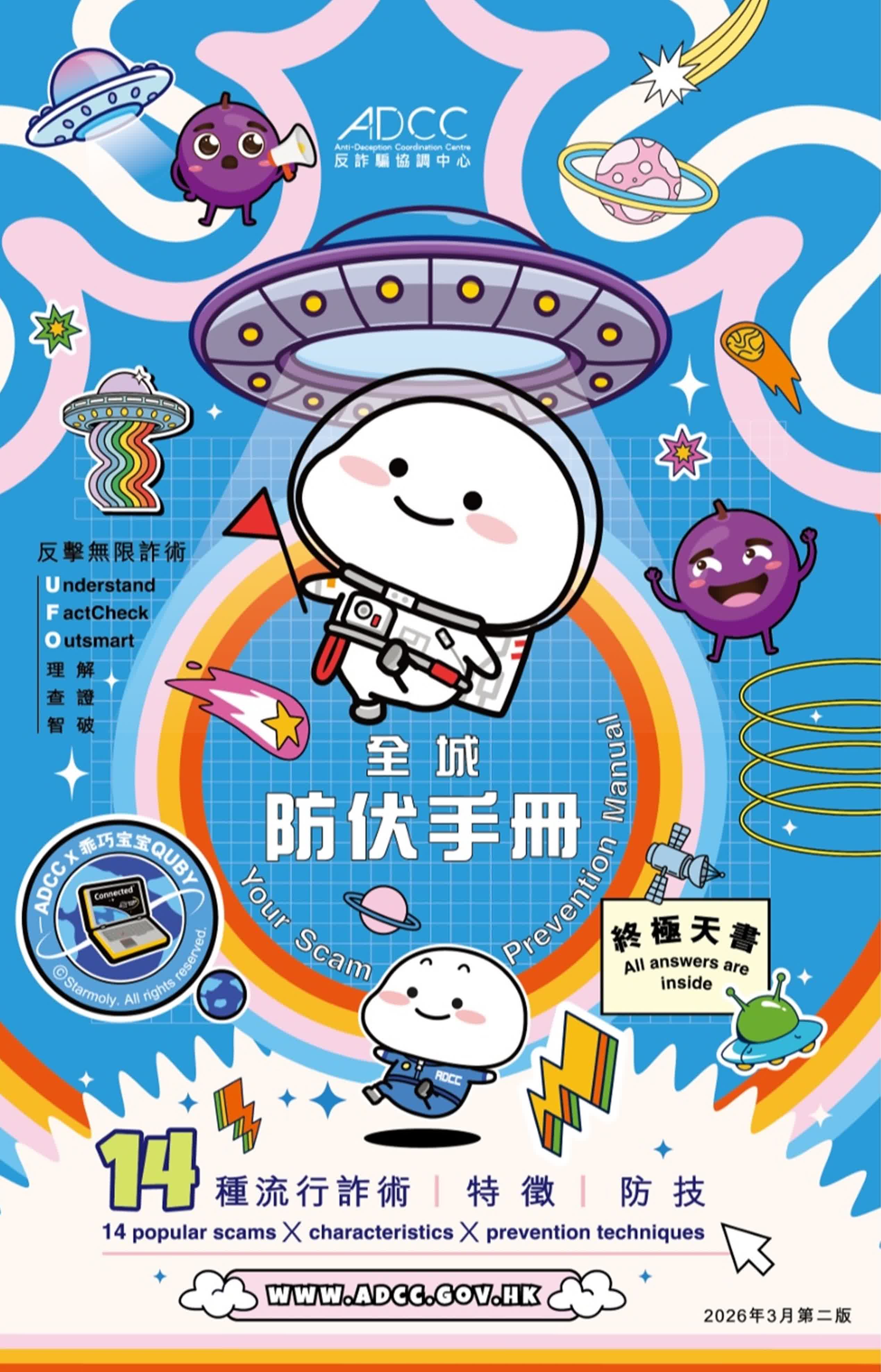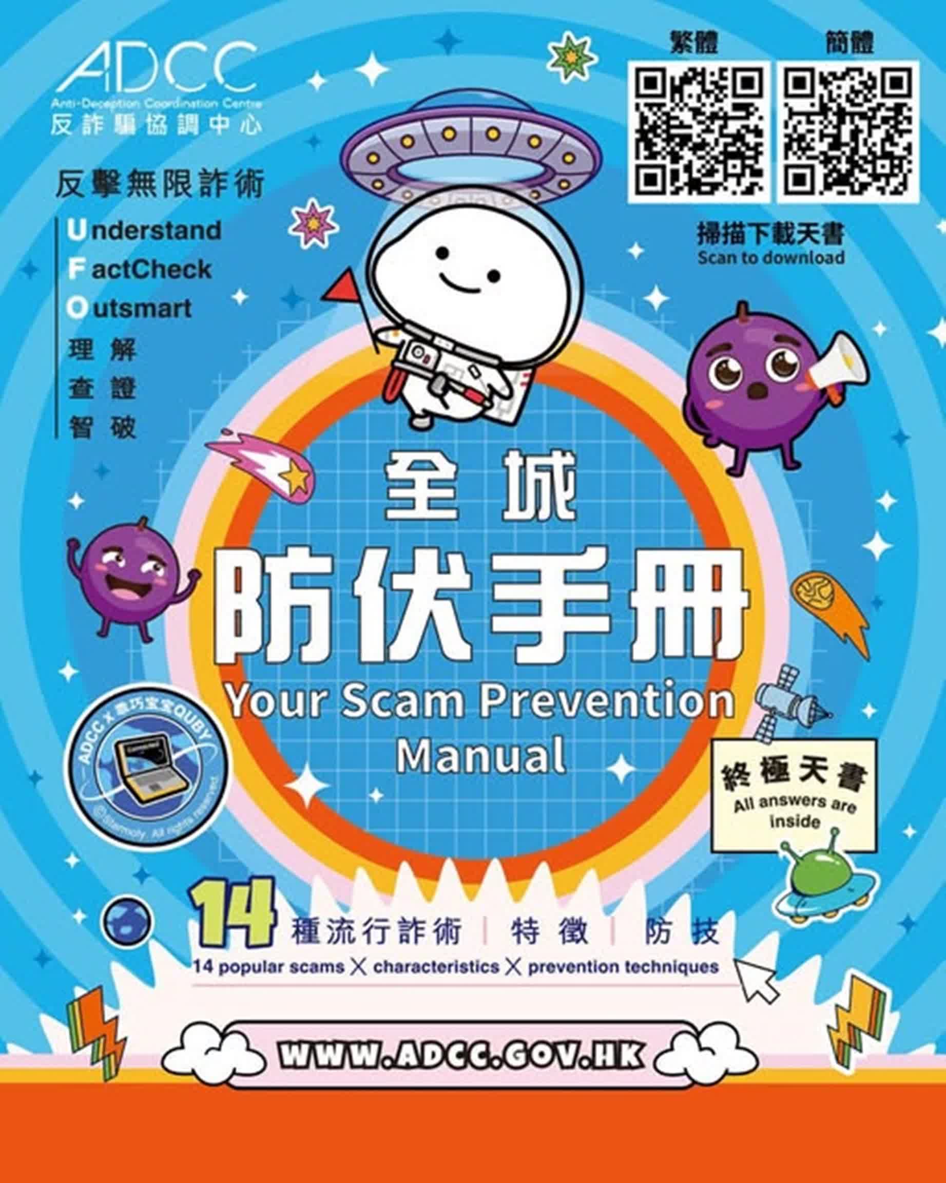 《全城防伏手冊》將時下最流行的14種詐術和騙局類型,分作假冒身份篇、網上交易篇、情感利誘篇,為讀者拆解騙術。正所謂學無止境,防騙亦一樣。若懷疑受騙,請立即參考手冊內提供的防騙熱線一覽,或致電「防騙易18222」熱線。