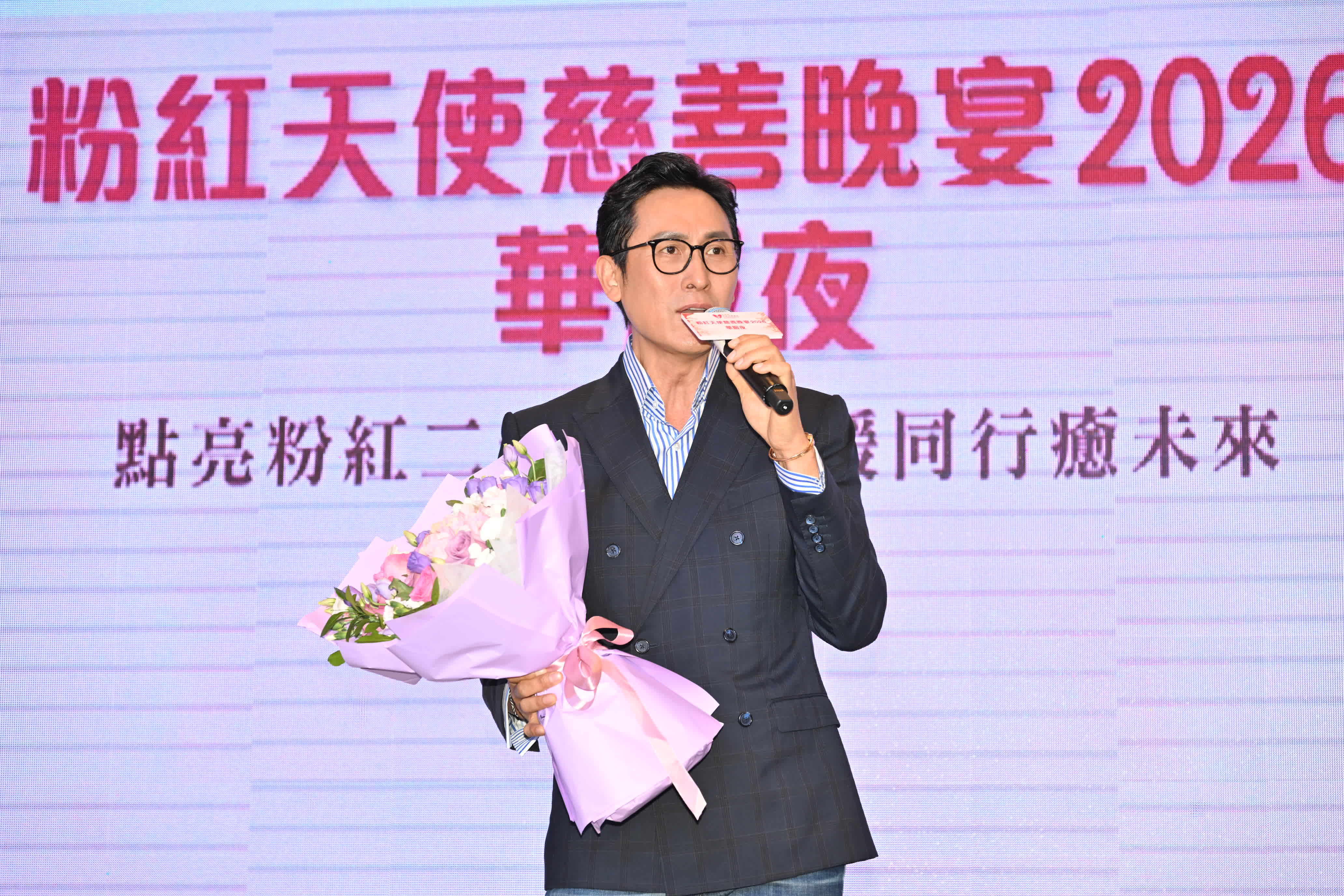 香港文匯報訊(記者 子棠)馬德鐘正忙於排練其「馬德鐘《瞬間》音樂會。廣州站」,但他仍心繫公益,日前抽空為慶祝「全球華人乳癌組織聯盟」成立二十周年舉行的「粉紅天使慈善晚宴2026華服夜」,擔任頒獎嘉賓及深情獻唱,令現場400多人驚喜尖叫。