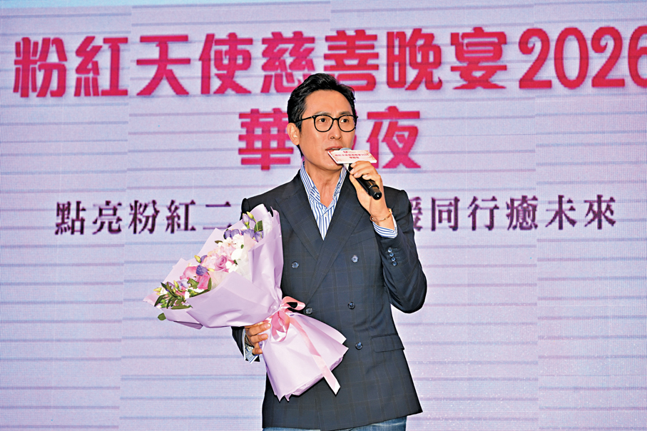 香港文匯報訊(記者 子棠)馬德鐘正忙於排練其「馬德鐘《瞬間》音樂會·廣州站」,但他仍心繫公益,日前抽空為慶祝「全球華人乳癌組織聯盟」成立二十周年舉行的「粉紅天使慈善晚宴2026華服夜」,擔任頒獎嘉賓及深情獻唱,令現場400多人驚喜尖叫。