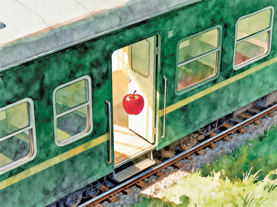 父親的座位靠窗,他把我的小書包輕放在腿上,從帆布包裏掏出一個蘋果,用衣角反覆擦拭後遞到我手裏:「吃吧,到了南方,爸爸給你寄好吃的。」