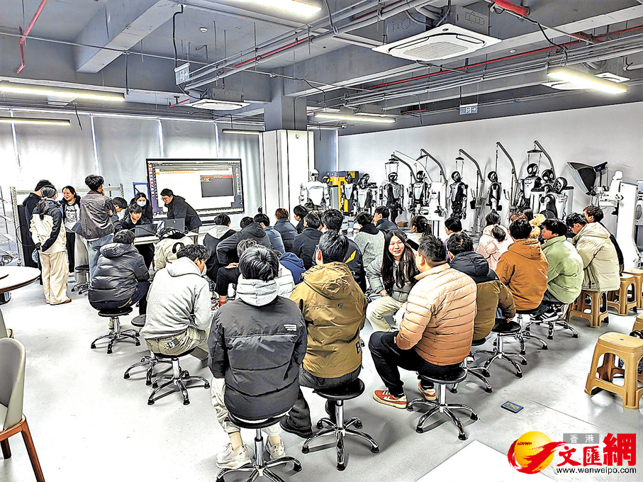 徐剛表示,入職以來,經常會有機器人企業派工程師過來作培訓講座,他通過學習,逐漸使數據採集過程更加得心應手,每天在工作時間裏能夠採集到更多高價值的機器人訓練數據。香港文匯報記者採訪當日,就有一場機器人訓練師技能培訓在訓練場火熱進行,培訓持續一周。近40位新引進的年輕人分四排坐在訓練場大廳的LED大屏前,聆聽來自人形機器人科技企業資深工程師傳授的知識和經驗。培訓間隙,亦有多位「00後」機器人訓練師走上講台,與受邀來此的工程師進一步交流,探討不同品牌機器人的特性、操作方法、故障處理、數據採集平台使用等問題。「目前團隊中大家基本有各自熟悉或熟練掌握的機器人,如果遇到問題,既可以互相交流,也可以向技術總監或企業工程師求助。」徐剛說。