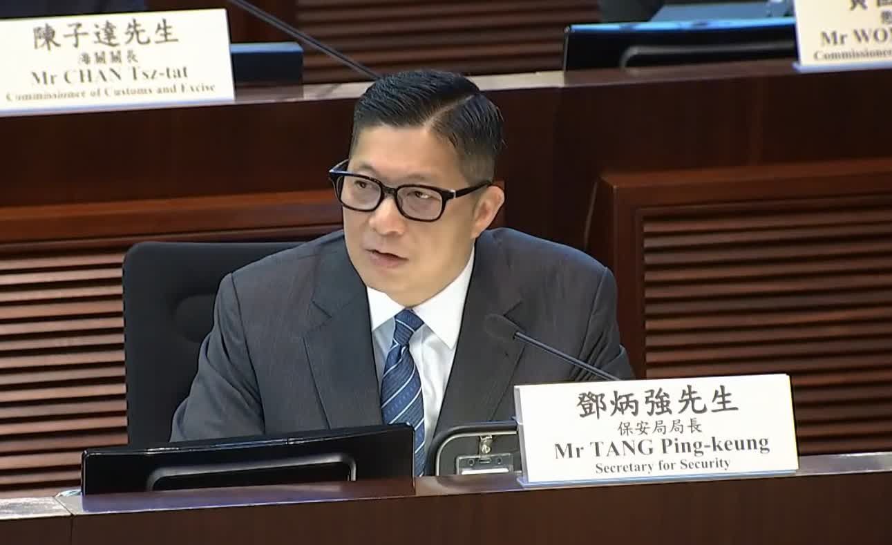 鄧炳強在介紹保安局工作範疇時指,維護國家安全的工作「只有進行時、沒有完成時」,在現時風高浪急的地緣政治局勢下,更加會堅守崗位,維護國家安全。就宣傳教育方面,政府會以多管齊下的策略提高市民大眾的國家安全意識,以鼓勵公眾,特別是年青一代,主動肩負維護國家安全的重要使命。