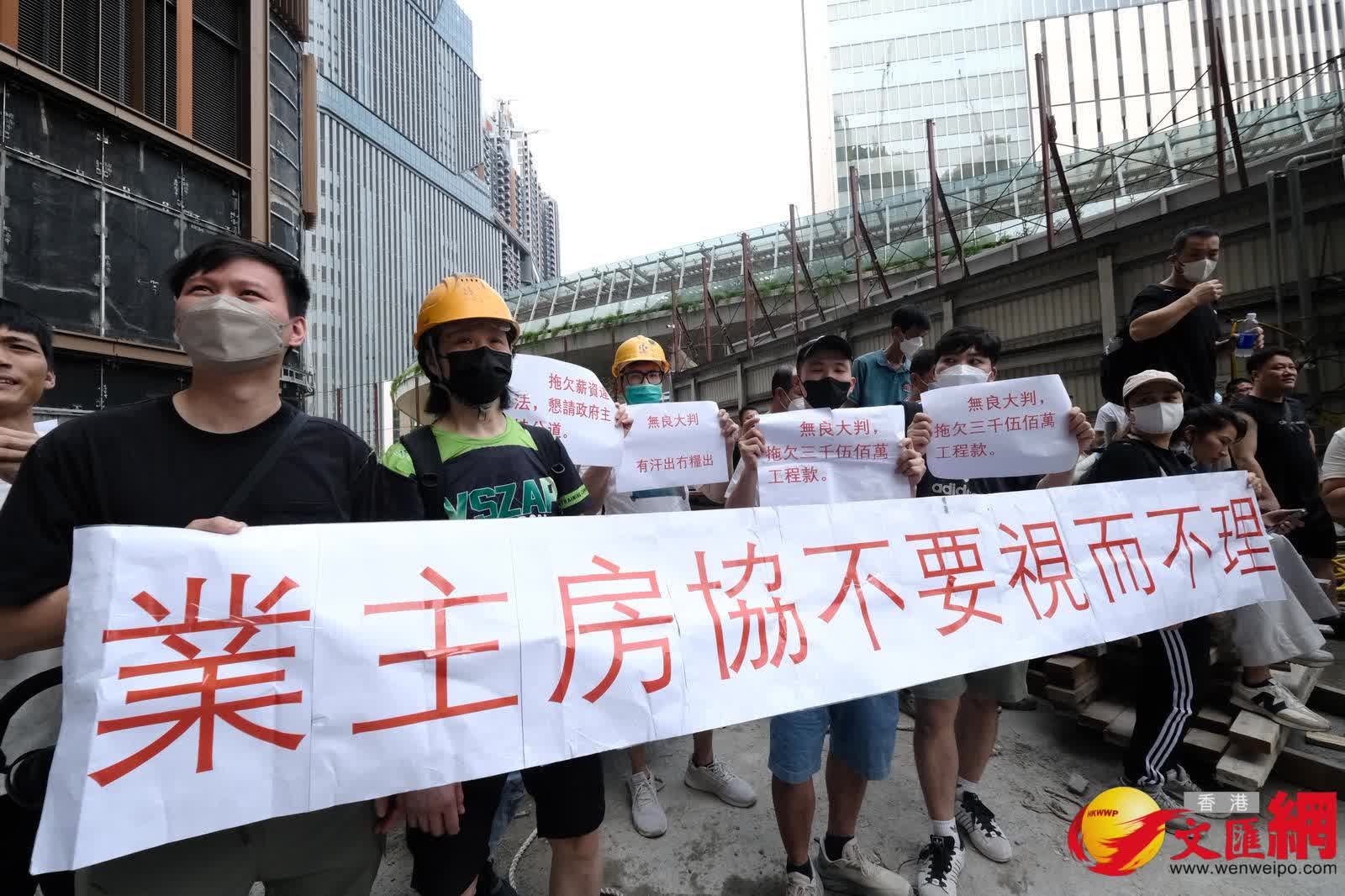 香港文匯報訊(記者 蕭景源)今日(17日)早上9時許,逾百名工人到達啟德沐縉街一地盤外聚集持標語及拉橫額追討合共數百萬元欠薪,其間約50名工人進入地盤抗議。警員接報到場調查期間,一名工人登上約5樓高平台位置危站,消防員需要開啟救生氣墊戒備,但未幾再有6名工人登上平台危險位置拉橫額,消防員需要開啟第二個救生氣墊,警方談判專家到場進行遊說,勞工處人員聯絡相關人士了解處理;警方暫列作「勞資糾紛」案處理。