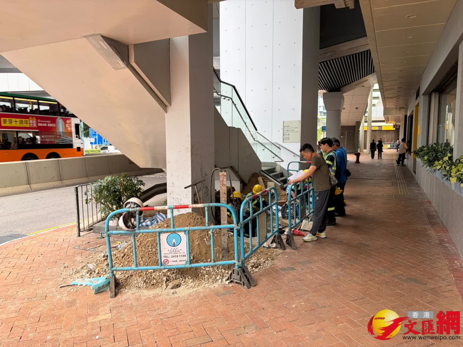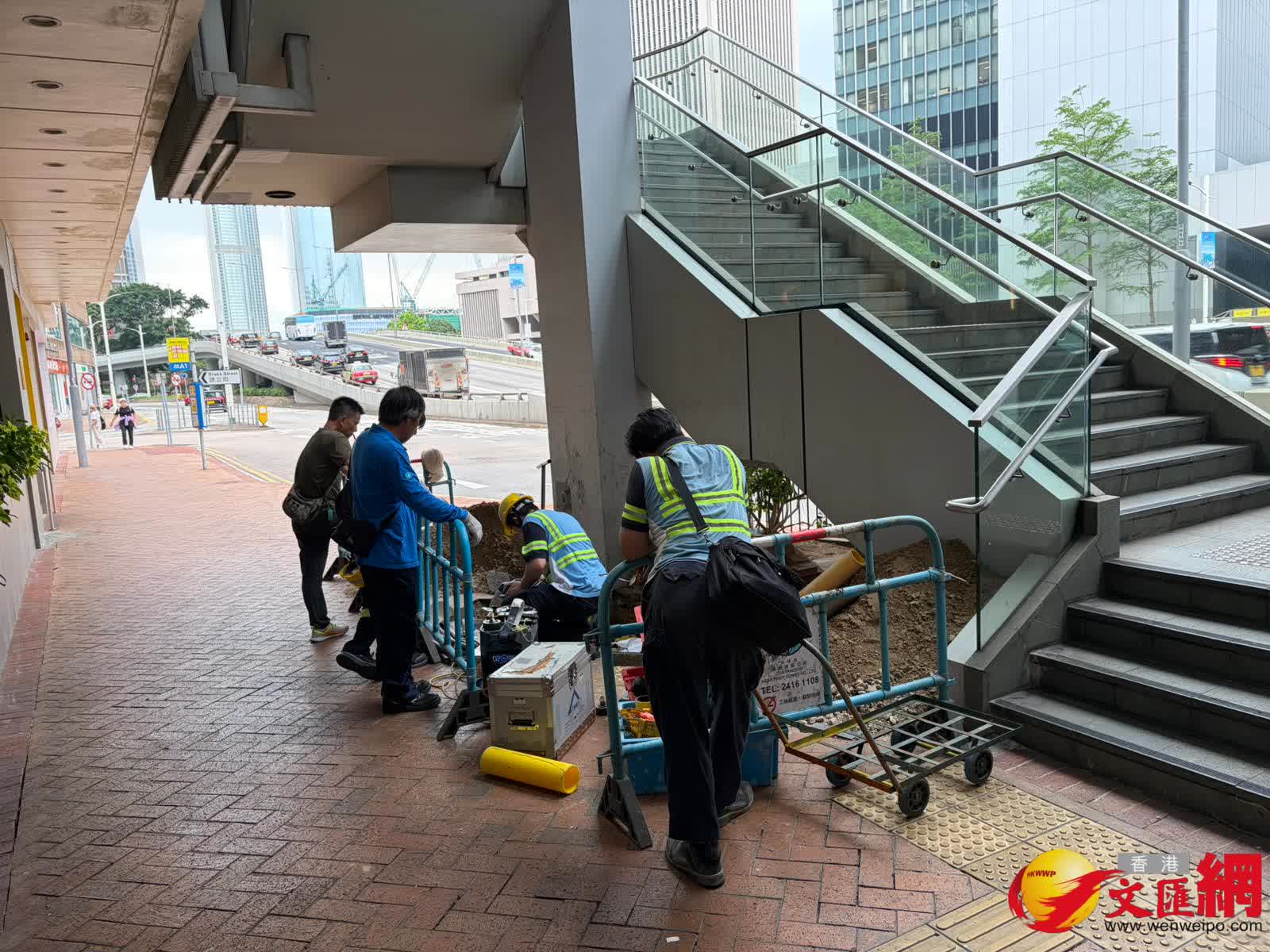 煤氣公司昨日指,經工程團隊搶修後,昨日區內受影響客戶的燃氣供應已大部分恢復,但人員清理燃氣管道積水工作仍然持續,爭取今日(17日)全面恢復供氣。香港文匯記者今日現場所見,續有煤氣公司的工程人員在遠東金融中心附近進行緊急維修。
