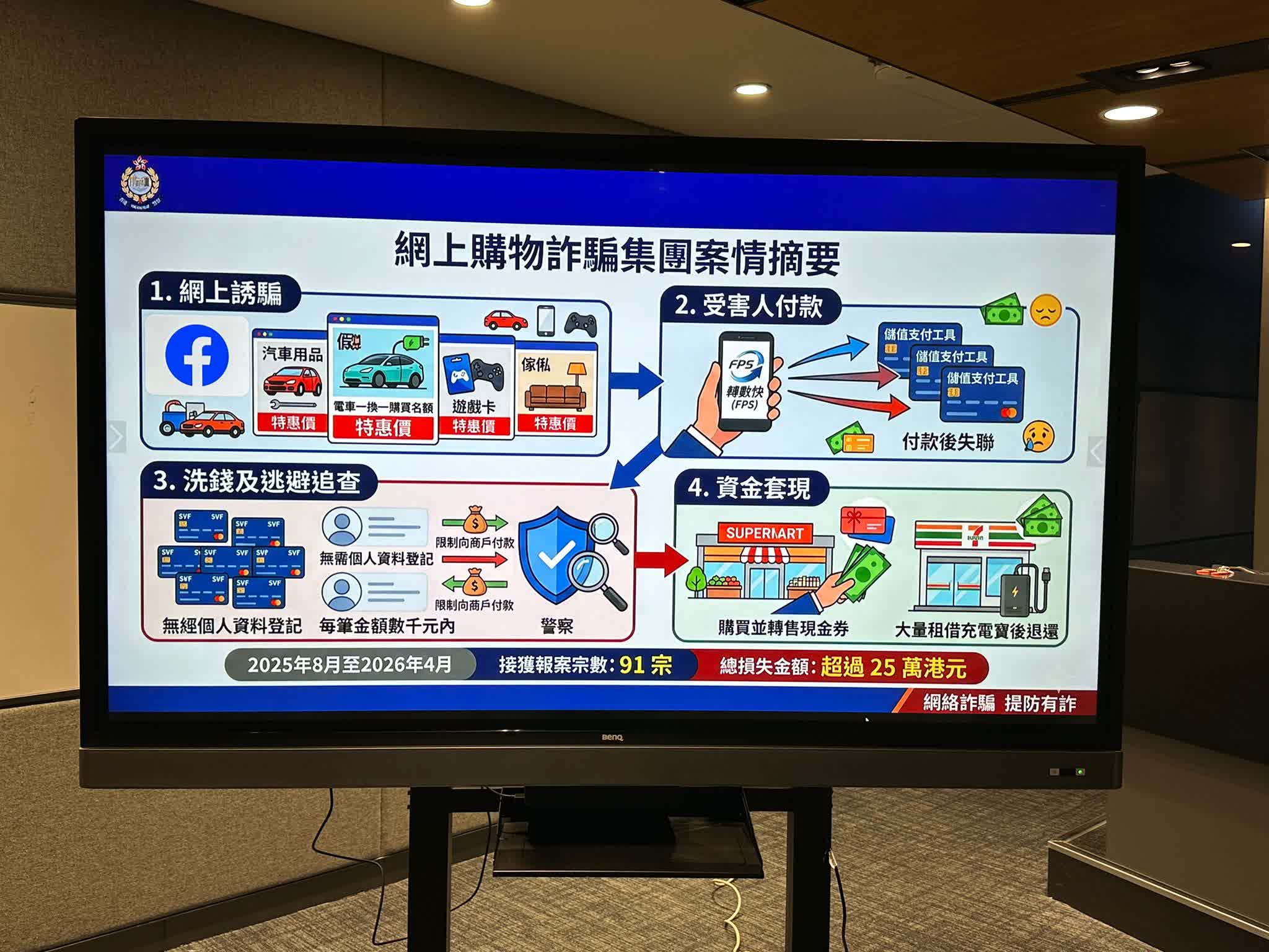 警方表示,去年8月至今年4月期間,透過儲值支付工具收取小額交易詐騙案呈上升趨勢,經仔細分析騙案的金額、付款方式及聯絡手法後,成功鎖定一個活躍於網上的詐騙集團。