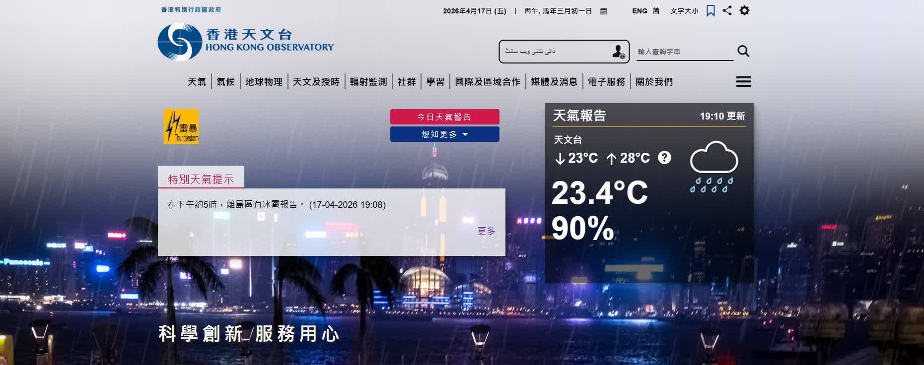 香港文匯報訊(記者 蕭景源)受一道低壓槽正為廣東沿岸帶來驟雨及雷暴影響,天文台今日(17日)下午3時40分及3時50分,分別發出雷暴警告及可能受冰雹影響的特別天氣提示後,再於下午4時35分發出黃色暴雨警告。