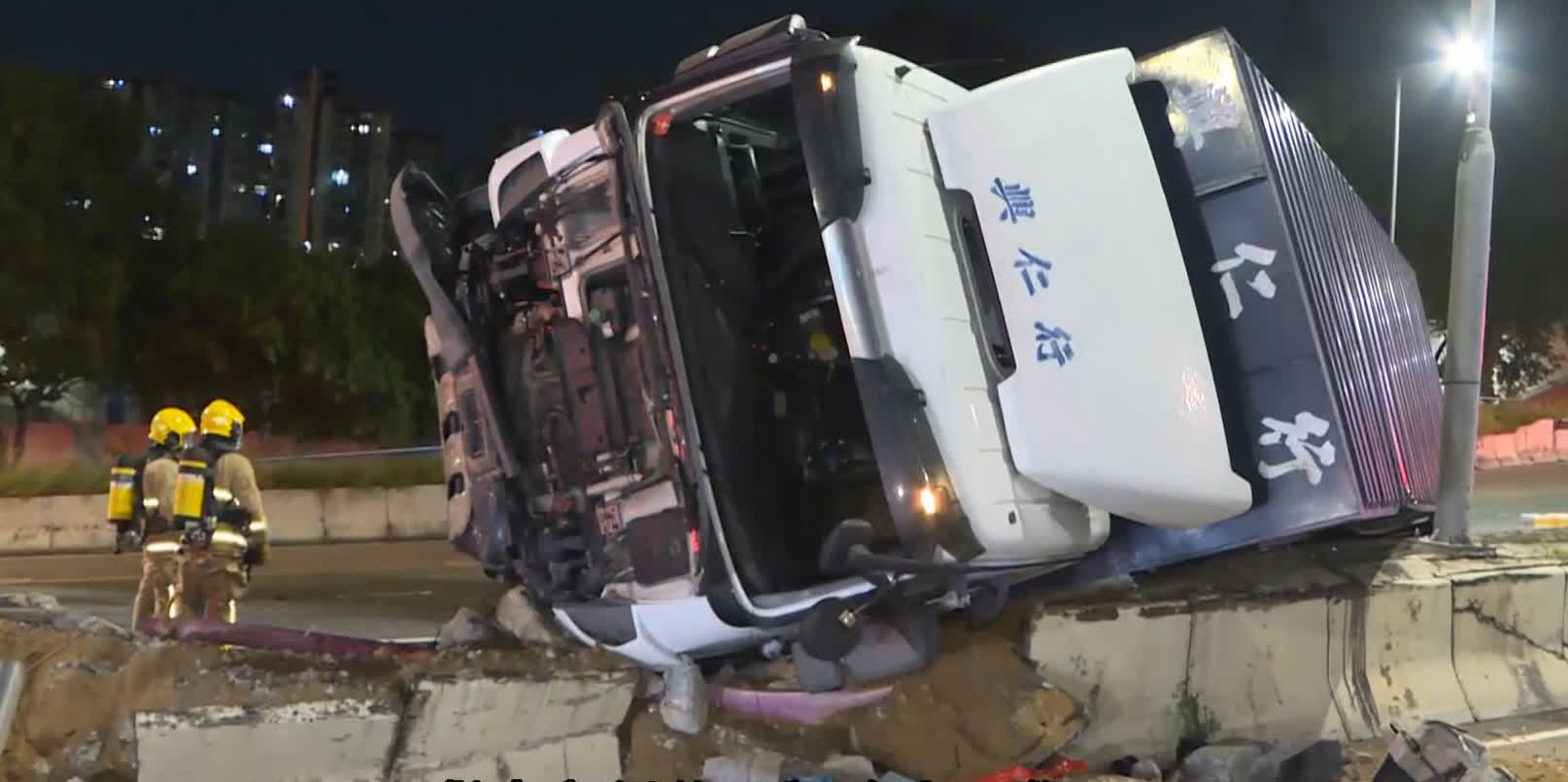 香港文匯報訊(記者 蕭景源)今日(18日)凌晨0時許,一輛重型貨車沿荔枝角呈祥道往荃灣駛至近盈暉臺對開時,懷疑失控掃毀一段路中分隔石壆,繼而調頭向左翻側橫亘石壆,部份車越過對開行車線,司機一度手腳受傷被困,幸傷勢不嚴重,由消防員協助離開車廂經初步治理,拒絕送院;警方正調查車禍原因。