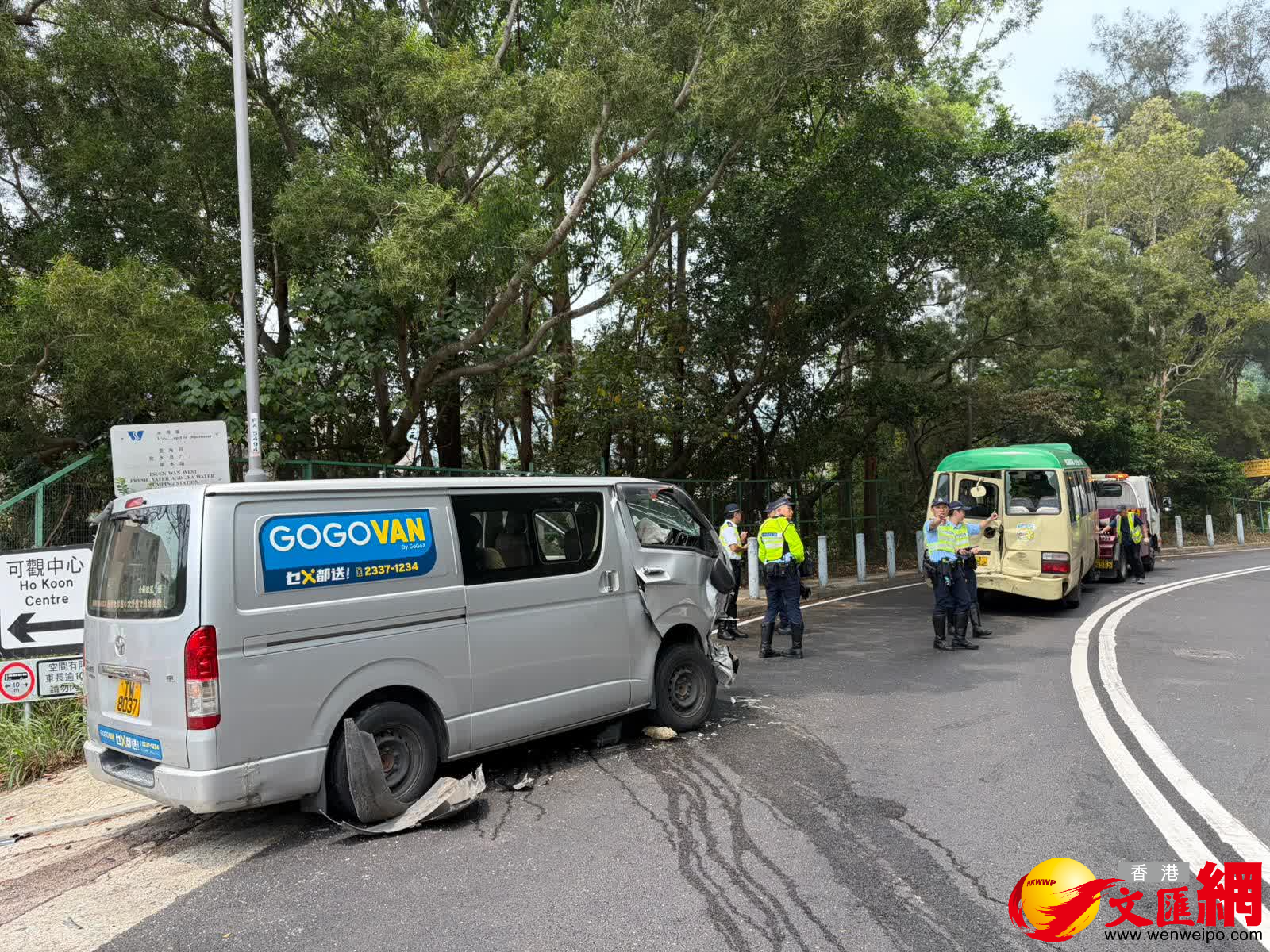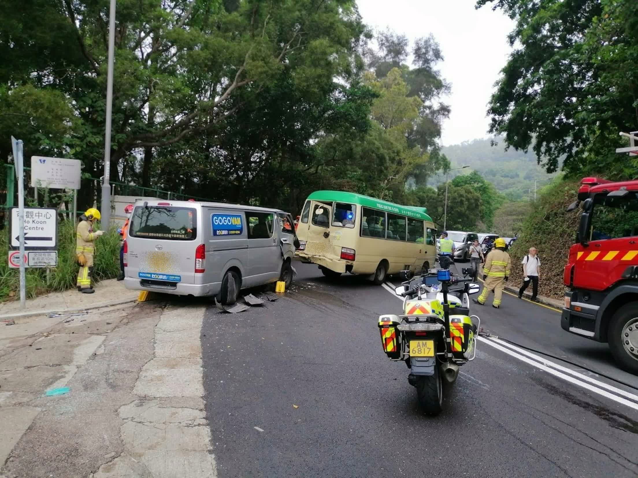 救援人員接報趕至,小巴姓林(67歲)司機、輕型貨車姓陳(77歲)司機,以及小巴4男7女乘客(25至82歲)共13人受傷,他們全部清醒,由救護車分別送仁濟醫院及瑪嘉烈醫院治理。涉事小巴車尾被撞毀,輕型貨車車頭毀爛,司機位車門損毀。