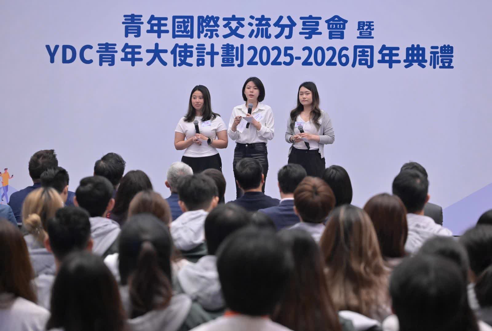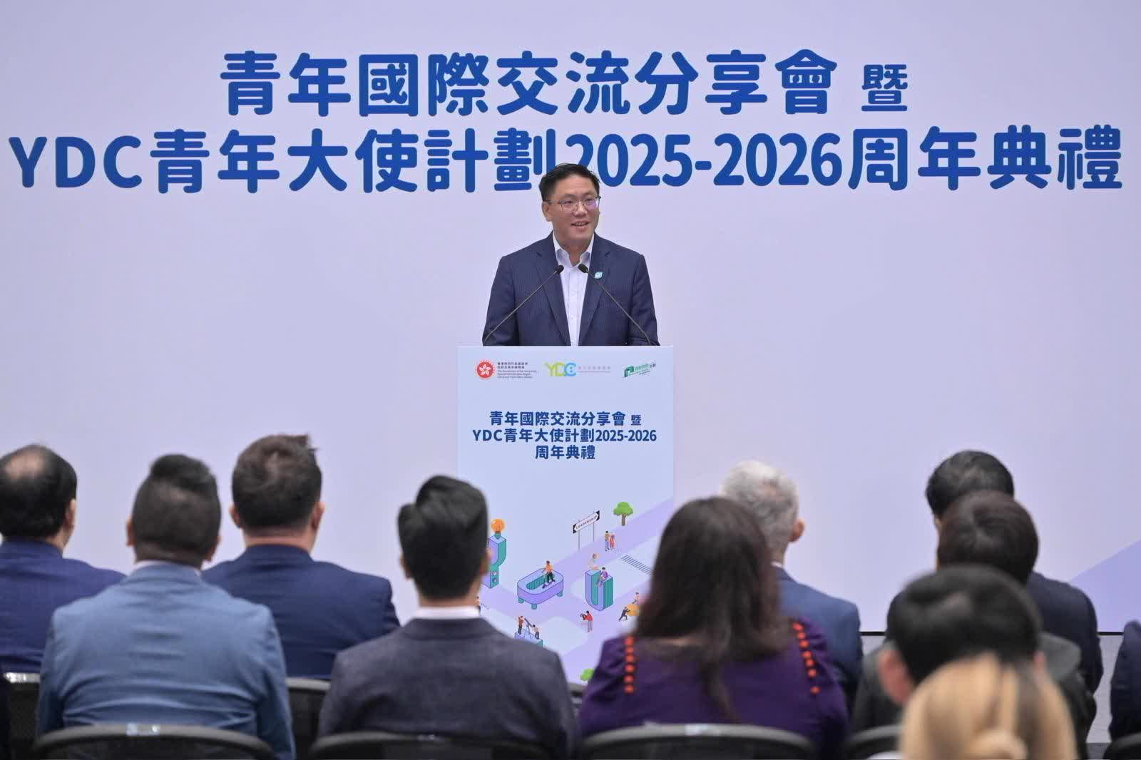 香港文匯報訊(記者 蕭景源)署理民政及青年事務局(民青局)局長梁宏正聯同青年專員陳瑞緯,今日(18日)主持青年國際交流分享會暨YDC青年大使計劃2025-2026周年典禮。梁宏正表示,民青局和青年發展委員會(青發會)合作積極推動青年國際交流,讓青年拓展國際視野,了解世界發展局勢。在2025/26年度,「民青局國際青年交流資助計劃」共資助約90個國際交流項目,受惠青年人數約2400人,他們到訪逾40個國家,大多屬「一帶一路」地區。