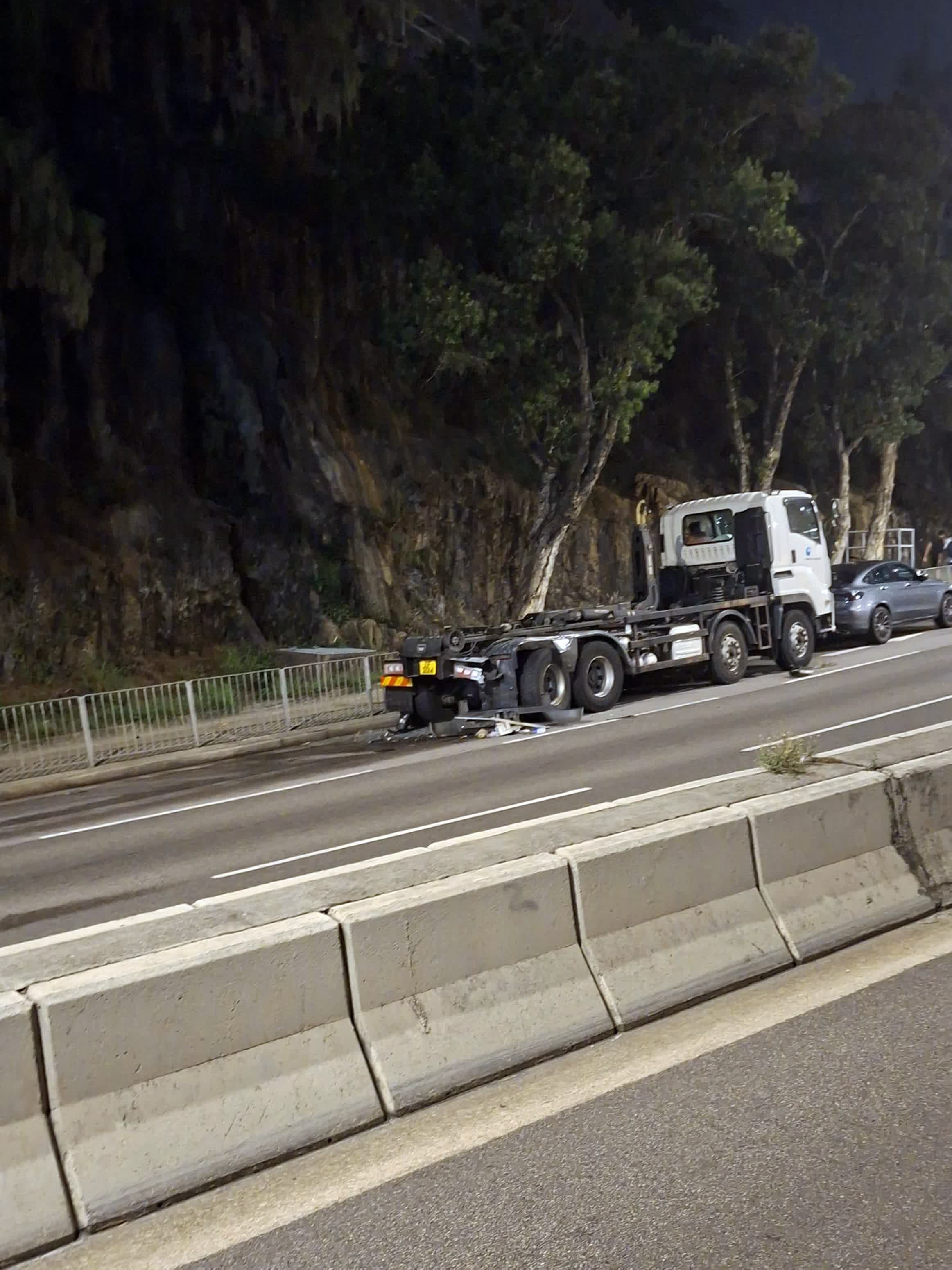 香港文匯報記者現場可見涉事專線小巴事發後仍停在路中,左邊車頭損毀嚴重變形凹陷,泵把及車牌飛脫,擋風玻璃破裂,路邊則停有一輛環保斗勾車,其前方另停有一輛私家車,被撞的環保斗勾車右邊尾部損毀。