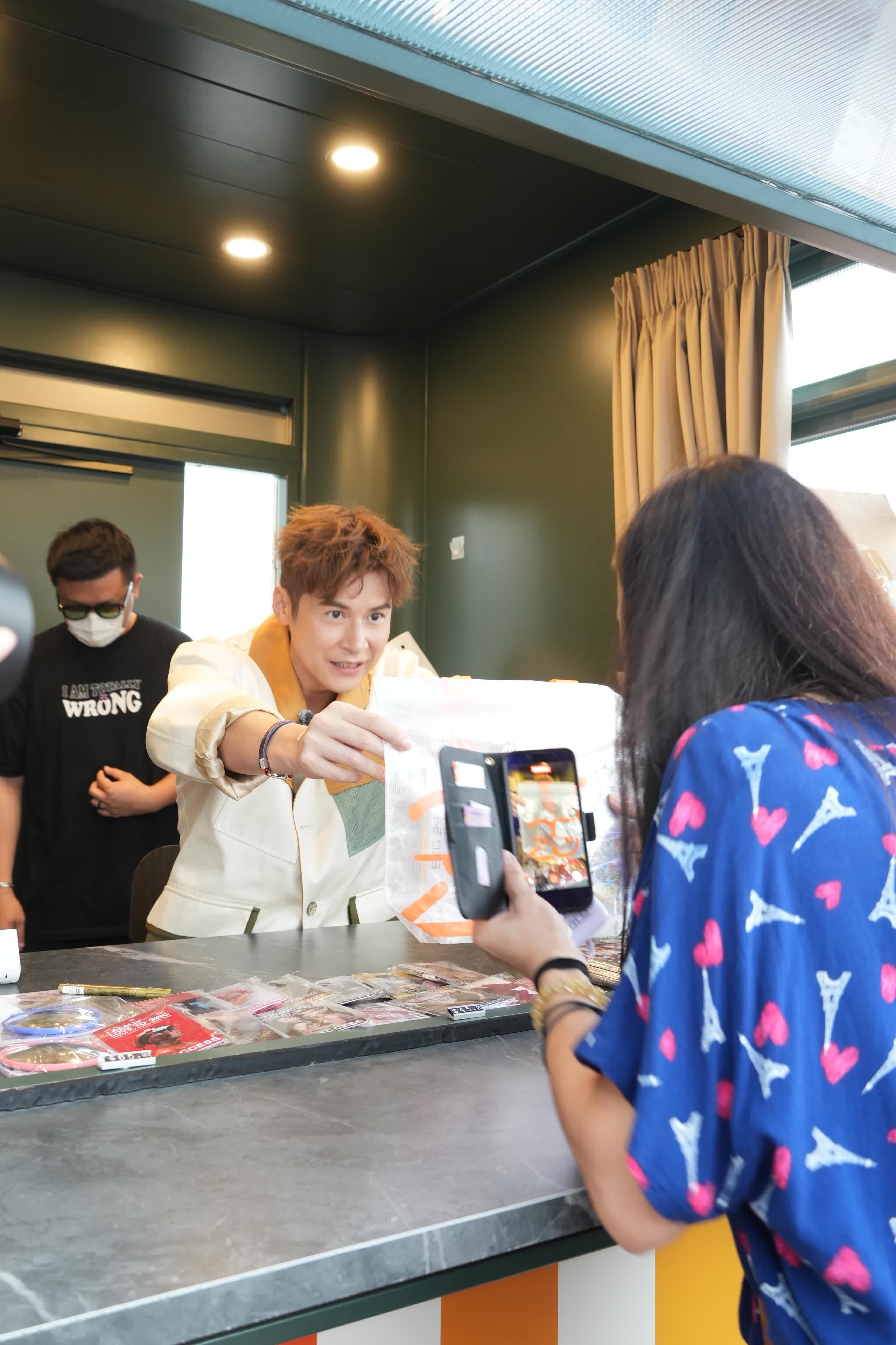 當日家樂非常稱職,落力推銷到聲嘶力竭。原本不少粉絲到限定店已經鎖定目標,不過被家樂三寸不爛之舌一出:「呢個袋得返好少咋!」、「呢本校刊唔買一定後悔!」、「呢塊歌詞鏡真係一定要買。」結果個個都乖乖加碼,買多幾樣周邊才肯離開,家樂亦十分識做,有求必應,除了於「校刊」上簽名,亦逐一跟客人合照。