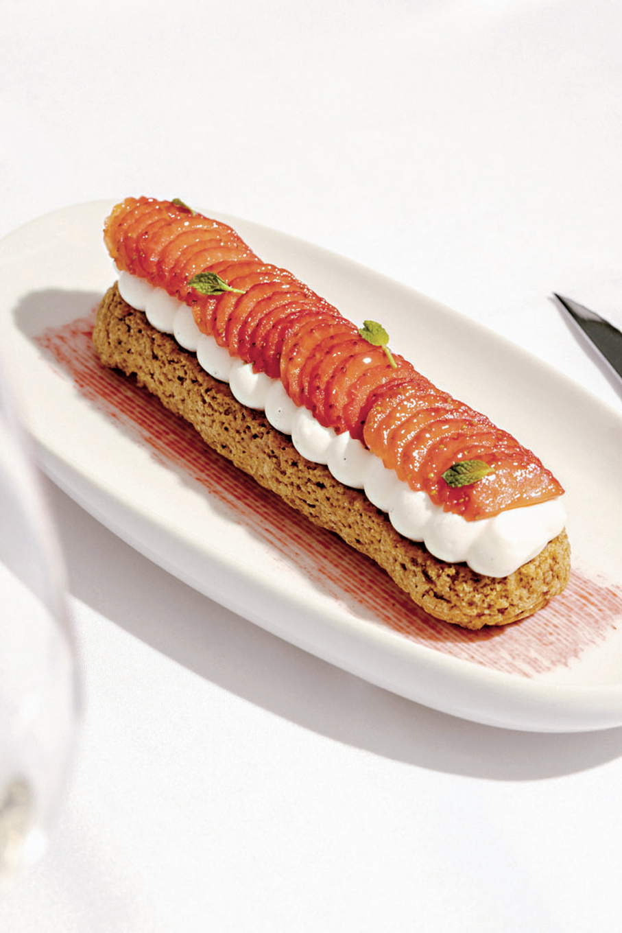 春日氣息亦延續至主菜與甜品。「米蘭式小牛肉」選用肉質細嫩的小牛肉,外層裹上金黃鬆脆的麵包糠,內裏軟嫩多汁;「海膽檸檬意大利細扁麵」則以檸檬清香襯托海膽的濃郁綿滑,展現地中海沿岸的清新氣息。甜品方面,「士多啤梨泡芙」為經典泡芙注入清新優雅的變奏,在甜度與輕盈感之間取得恰到好處的平衡,為春日盛宴畫上圓滿句號。