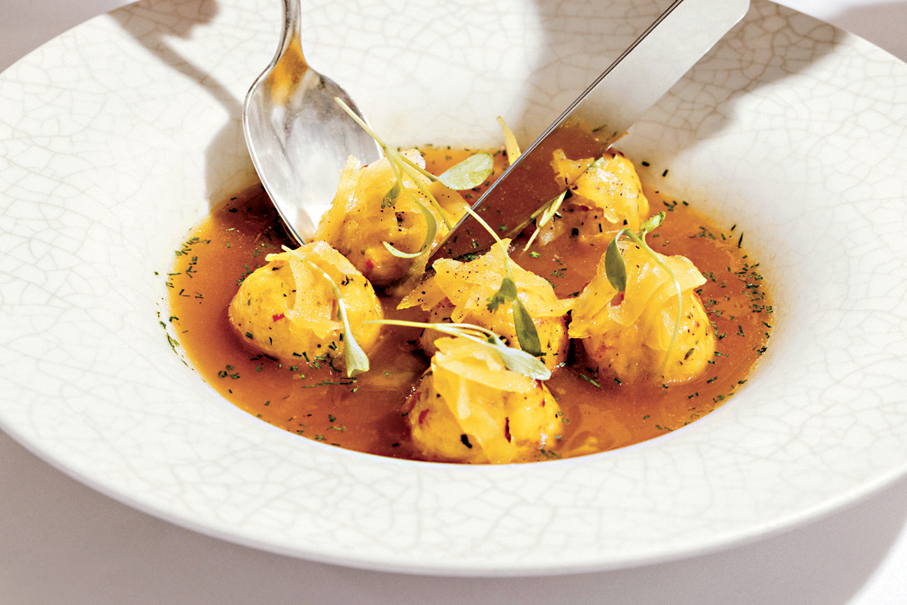 全新菜單演繹春日時令滋味,其中包括「薄切紅蝦配魚子醬及酸忌廉」,以當造紅蝦為主角,將其天然鮮甜發揮得淋漓盡致,配以魚子醬與少量酸忌廉點綴,提升層次並突顯原始風味;「馬賽風味魚蛋湯」以南法港口城市馬賽為靈感,同時向香港街頭飲食文化致意,選用新鮮白魚,並以香草與番茄調味,味道鮮甜清新;適逢雅枝竹最鮮嫩的季節,「醃雅枝竹」經簡單處理保留細膩甜味,為濃郁菜式帶來清爽對比。