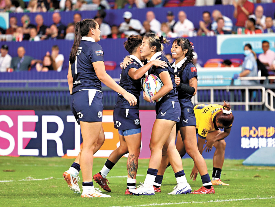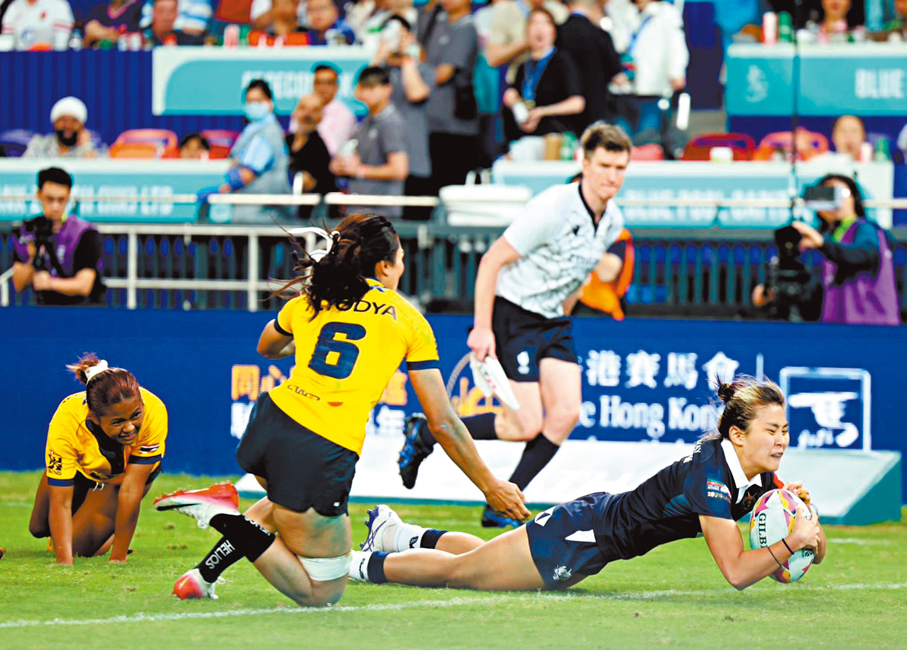 一連三日的年度體育盛事「香港國際七人欖球賽」昨日在啟德主場館上演次日賽事,氣氛比首日更加高漲,共41,457名球迷入場觀戰。香港女子隊以12:24不敵泰國,小組賽取得1和1負,出線形勢嚴峻。雖然球隊今仗落敗,但並非一無所獲,首度披甲的港日混血女將植松明香(Haruka)於比賽尾段成功達陣,這也是她首次在啟德主場館達陣,Haruka坦言這是個重大里程碑,「這個機會不是每個人都有,我達陣後聽到的全部都是歡呼聲。」●文:香港文匯報記者 張發兒 圖:香港文匯報記者 郭正謙
