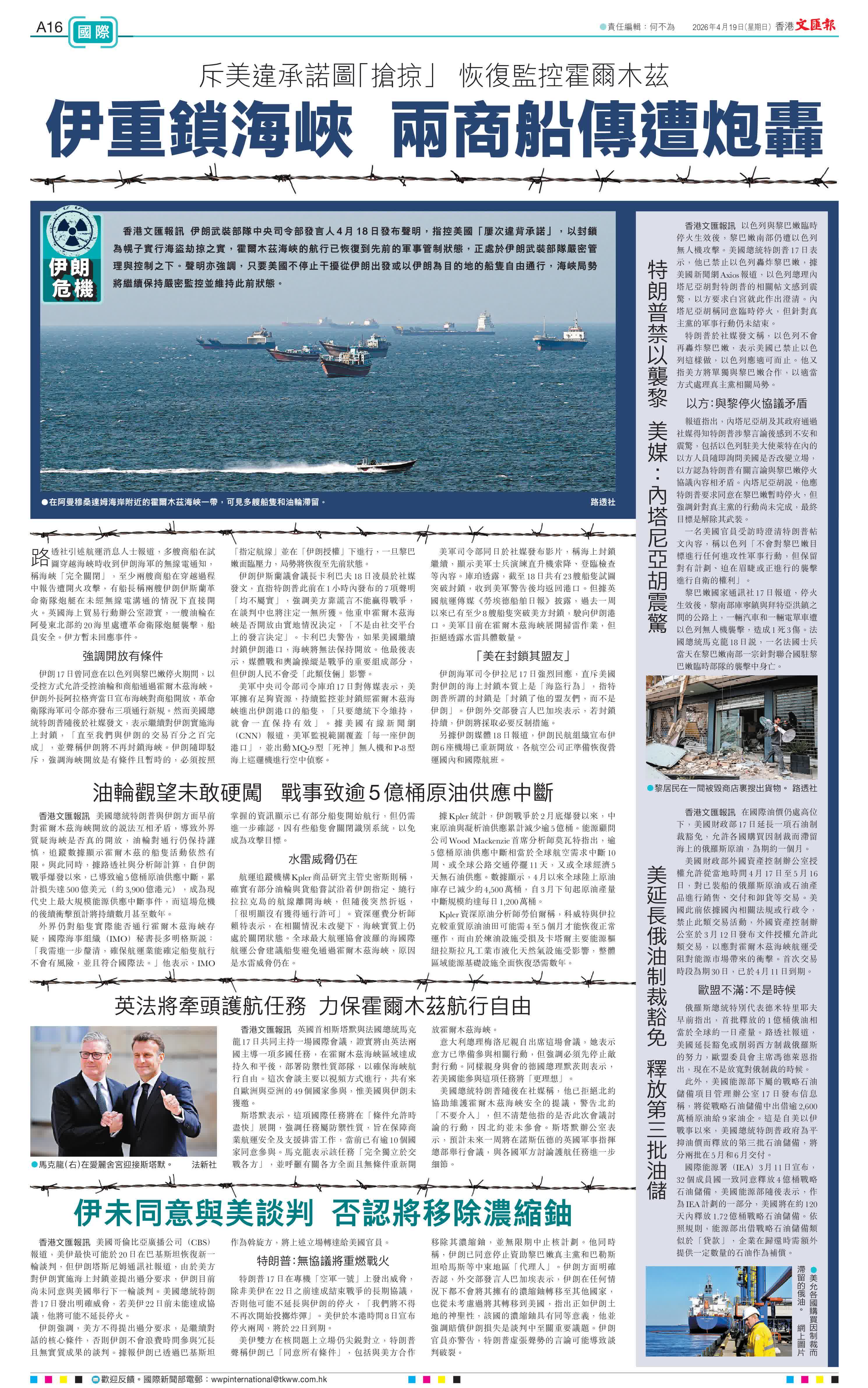 Kpler資深原油分析師勞伯爾稱,科威特與伊拉克較重質原油油田可能需4至5個月才能恢復正常運作,而由於煉油設施受損及卡塔爾主要能源樞紐拉斯拉凡工業市液化天然氣設施受影響,整體區域能源基礎設施全面恢復恐需數年。