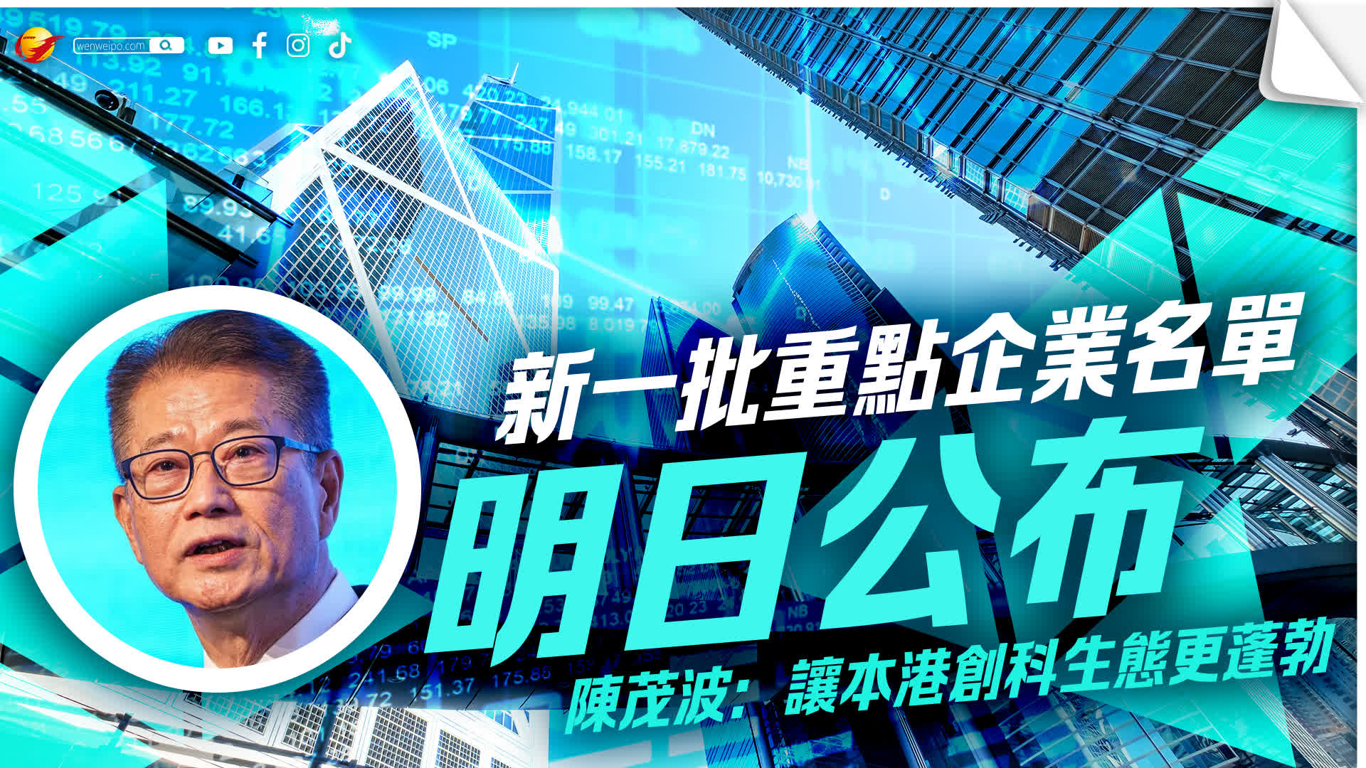 財政司司長陳茂波表示,明日將公布新一批重點企業名單,當中包括多間市值達千億港元的公司,涵蓋生命健康科技、低空經濟、人工智能、新能源材料、跨境金融基建及金融科技等前沿領域。