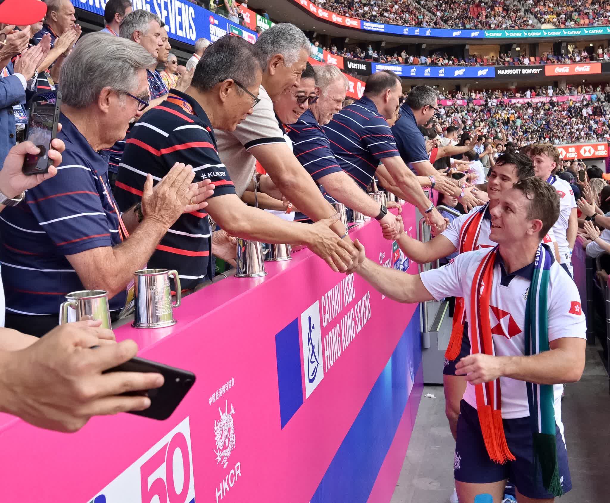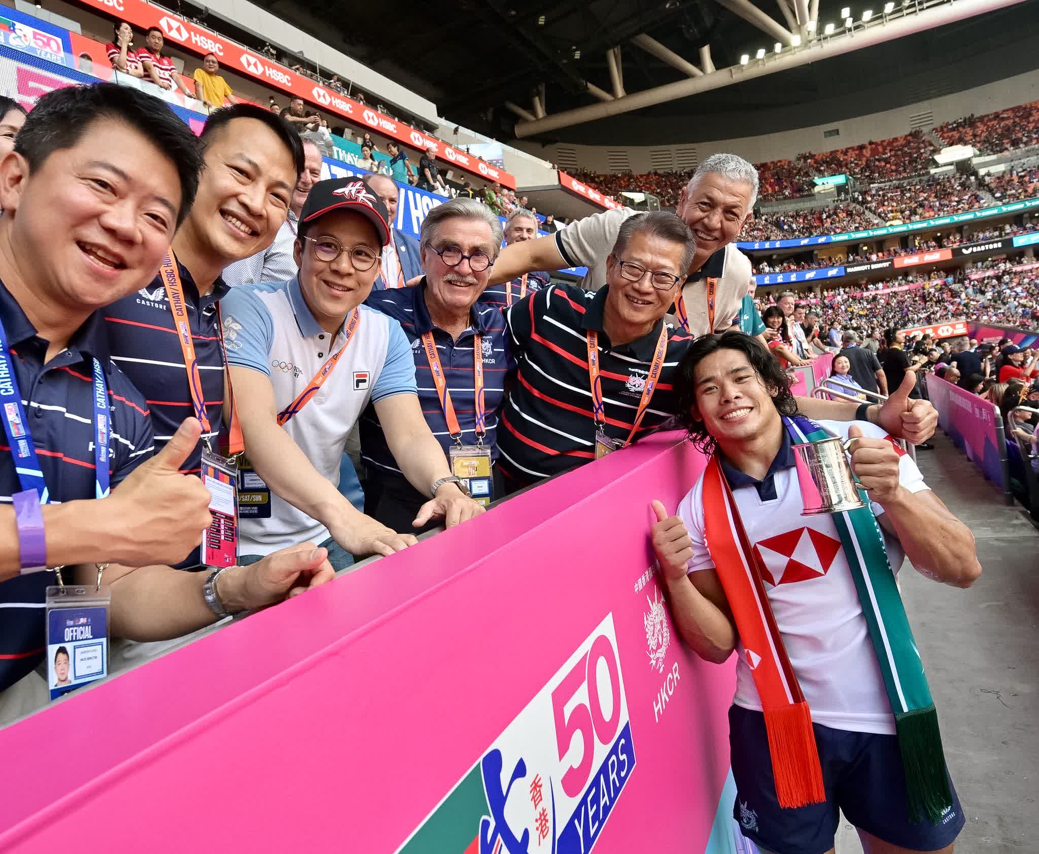 財政司司長陳茂波晚上亦在其個人FB專頁帖文恭賀,指今日現場熱鬧氣氛邁向頂峰,男子Melrose銀劍賽中國香港隊對日本的賽事非常緊湊精彩、主場的香港球迷全情肉緊為港隊打氣。面對強敵,港隊全力以赴、表現出色,最終以19比15力壓對手,成功取得銀劍賽三連霸,全場球迷都為之振奮。