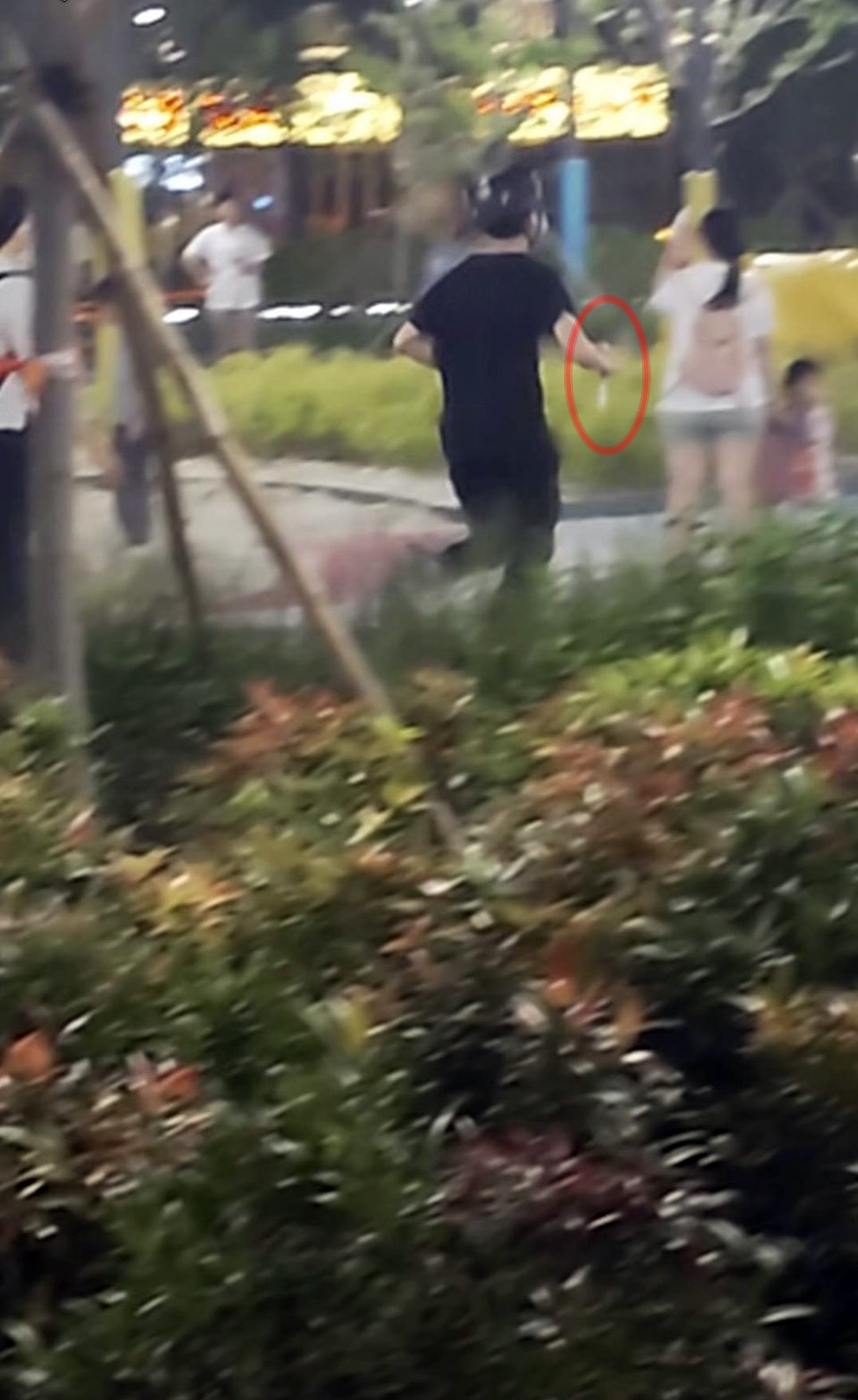 今日凌晨開始,網上流傳一段長約17秒的片段,顯示一名身穿黑衫黑褲,狀似年輕男子,手持一把利刀,頭戴有攝像頭的頭盔,在有眾多小朋友玩耍的將軍澳南公園內奔跑。畫面可見持刀男子從多人身旁跑過,現場有家長或傭工拖着小童,但疑事發突然和時間甚短,均未及反應,男子亦無作出傷人舉動。