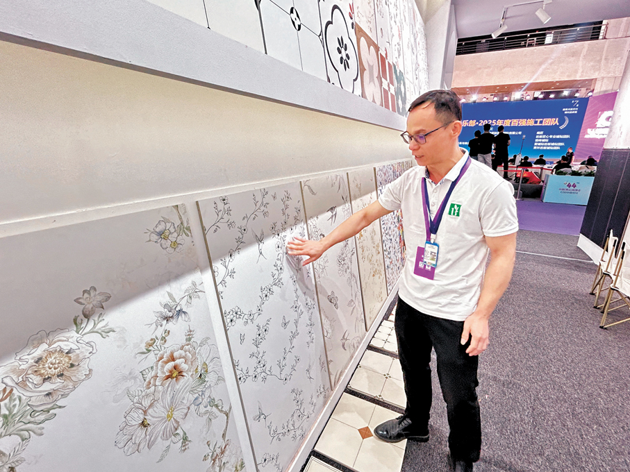 本屆陶博會上,參展企業紛紛亮出最新技術和產品,吸引海內外採購商。其中佛山市百艾特陶瓷公司展出大量新品,特別是琳琅滿目的各式藝術瓷磚,受到國內外客戶青睞。公司負責人覃先生告訴記者,今年第一季百艾特瓷磚出口增長30%以上,客戶主要來自歐洲、東南亞和非洲。