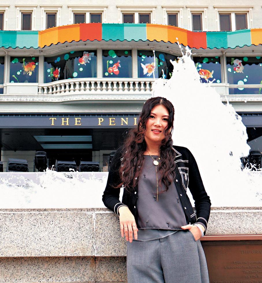 她向香港文匯報記者分享,正如許多大型裝置的安裝與布置,為避免影響酒店住客體驗,作品多於深夜打造,但那時燈光不算充足,因此團隊常需要在日間再檢查一番效果。