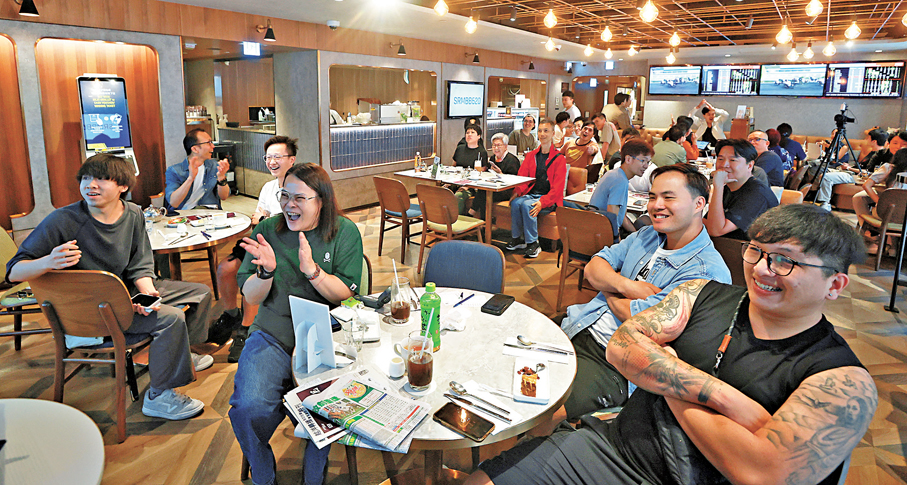 活動昨日中午12時開始,持續至當日第十一場賽事結束。文匯馬經悉心安排活動,不僅提供精美小禮物,更讓馬迷自由點選喜愛餐食,一邊享受美食,一邊聚焦大屏幕的賽事直播。為增加互動樂趣,文匯馬經分別在第二場、第五場及第九場賽後設立問答遊戲,考驗大家賽馬知識,馬迷踴躍搶答,贏取豐富禮品,現場笑聲與掌聲不斷。