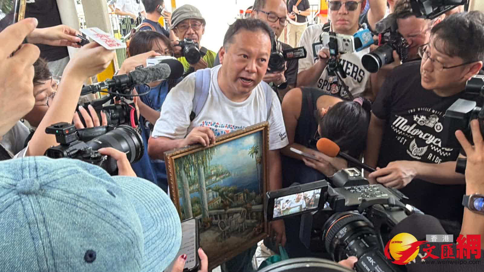 鍾先生說,其單位在大火中未有太大影響,坦言「(單位)比較好彩」,惟一些家電因積水損毀已經不能要,所以花兩小時已完成拾,無需再上樓多一次,但估計其他遭大火嚴重焚毀的位住戶,可能需要更長時間,才能完成執拾。他形容大廈樓梯情况較想像中好,雖然梯間嚴重熏黑,但已經打掃得好清潔,上樓前也獲派發手套可以扶著欄杆上樓,加上樓間窗戶已在大火中燒毀,反而通風良好,所以不覺得太辛苦。他展示從單位內執拾的物品,當中包括一幅掛在客廳的風景畫及西藏旅遊時購買回的畫,並指風景畫已經隨他搬屋兩次,笑言從風景畫完整無缺情况,可以知道單位「無乜燒過」。