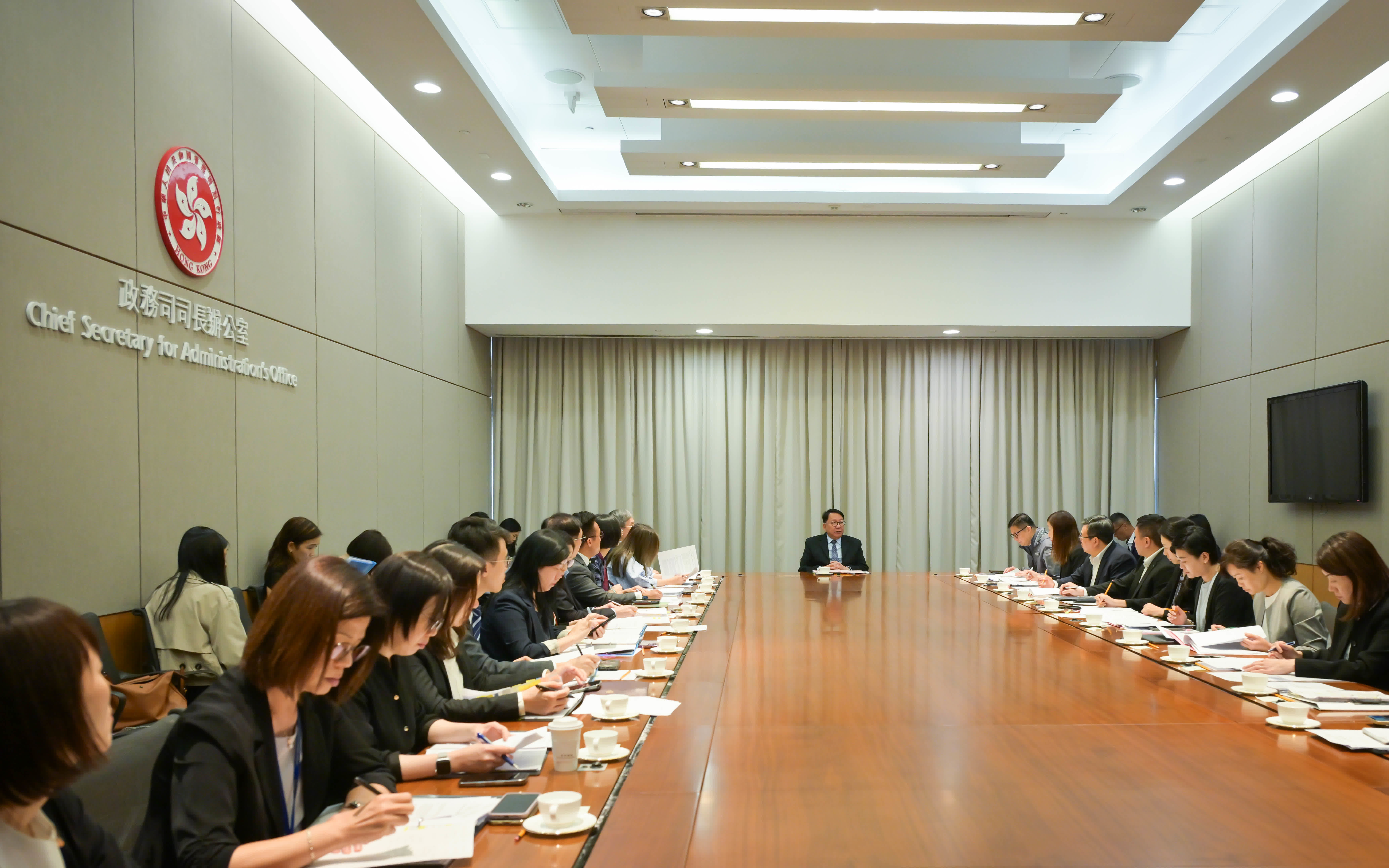政務司副司長卓永興、保安局局長鄧炳強、文化體育及旅遊局局長羅淑佩、運輸及物流局副局長廖振新、環境及生態局副局長黃淑嫻,以及其他相關政府部門的代表出席是次節慶安排跨部門工作小組會議。