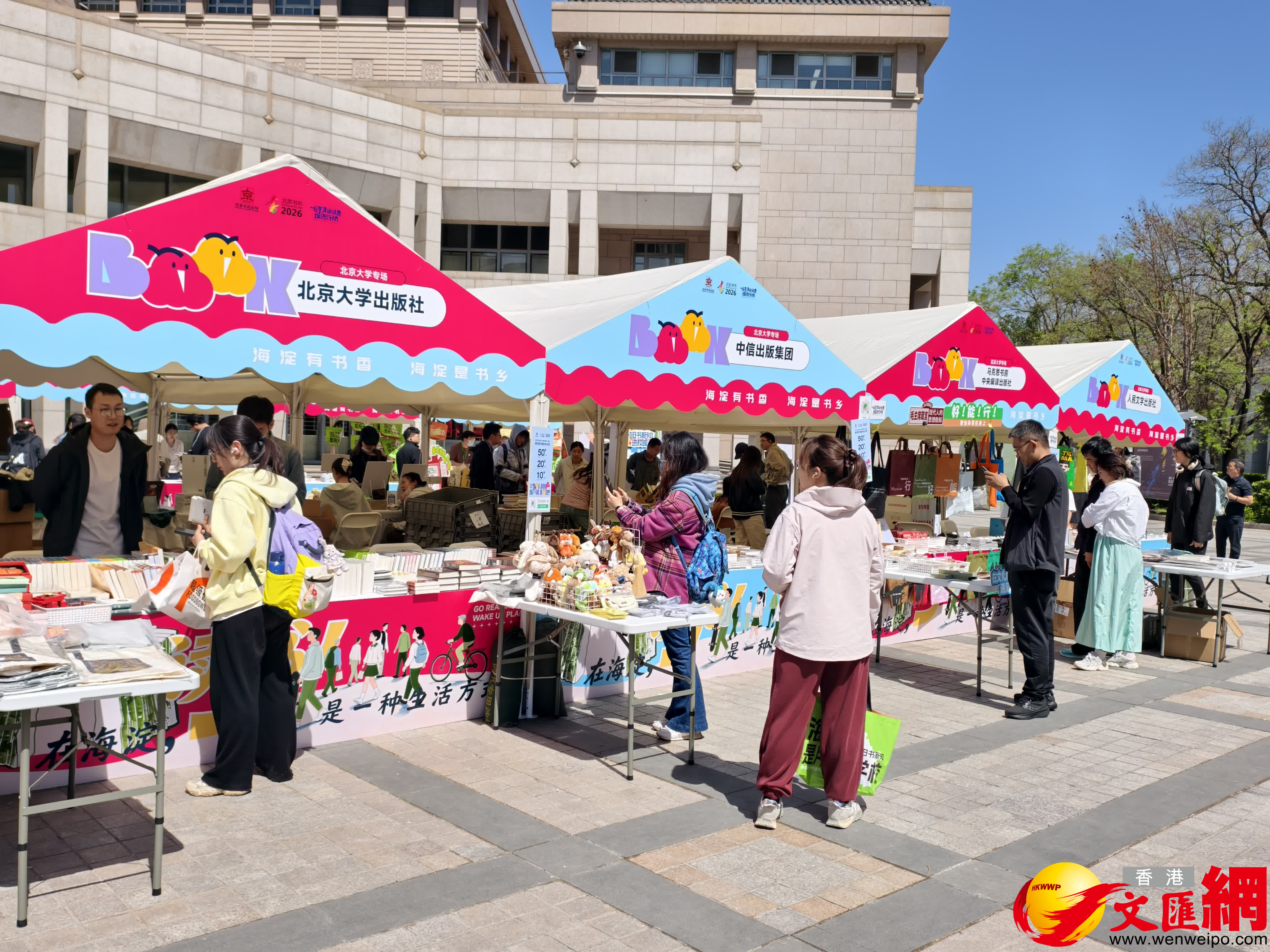春光明媚,一大早北京大學百周年紀念講堂前就匯聚了很多青年學生在各個書攤前挑選讀物。人民文學出版社、北京大學出版社、斯多格書鄉等20餘家出版社、書店帶來了種類繁多的出版物,並結合校園特色設置多個主題攤位。學生專屬攤位推出方言詩會、拚貼詩詞工坊、古籍徽章製作工坊及閱讀福利工坊,展現校園文化活力;圖書展銷區匯聚高校及優質出版社精品讀物;海淀融媒「光影朋友圈」攤位搭建青年影像創作交流平台;舊書置換體驗區整合圖書漂流、以書換植、書籍套圈等環節,推動舊書綠色循環。