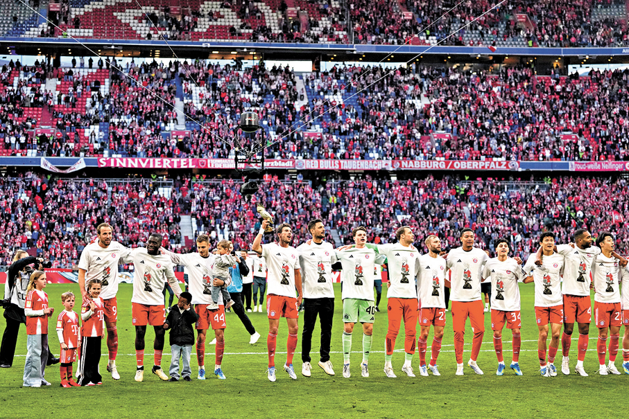 香港文匯報訊 據新華社報道,拜仁慕尼黑周日在德甲第30輪比賽主場4:2擊敗史特加,提前四輪鎖定德甲聯賽冠軍。繼賽季初奪得德國超級盃後,拜仁又將聯賽冠軍收入囊中,繼續向「六冠王」的目標邁進。