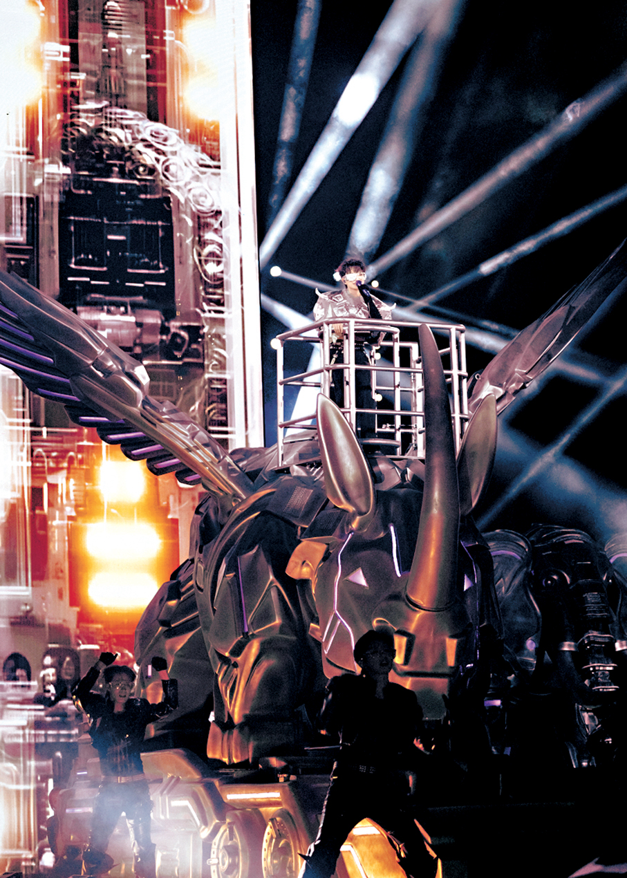 廣州作為國內知名的演藝裝備製造基地,「深深的」廣州巡演舞台硬體、舞美全面升級,每一處設計都精細服務於周深的音樂。78米超大裸眼3D大屏,跟着歌曲旋律即時變換場景,打破傳統舞台的空間邊界;巨型流星裝置懸在館上空,灑下一片浪漫夢幻的星空;百萬級的機械犀牛、仿生大象重磅登場,周深乘着機械獸出場的瞬間,再次讓人感嘆科技賦能音樂的魅力;蒸汽風花車緩緩環繞全場、2,000架無人機騰空而起,更與地面裝置構成天地一體的全景視聽體驗。
