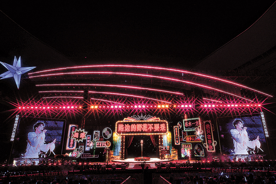 舞美並不強調炫技,細緻服務於每首歌的真切意境,這份視覺盛宴更外溢給街頭和城市居民,讓場外和行車路上的行人也幸運捕捉這份夜空裏的浪漫。不僅如此,奧體中心周邊的廣場、天橋上,大批沒能買到票入場的歌迷,自發又有序地聚在一起,形成了一個熱鬧又溫暖的「場外第二現場」。不少路人歌迷也跟着場內旋律同步合唱,人未能入場熱情卻不缺席,大家用最簡單的方式一起應聲而唱,也為廣州造就了一道熱情溫暖的城市音樂景觀。