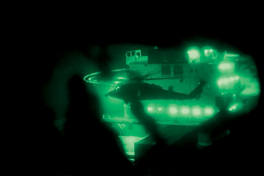 中央司令部20日再發聲明,指出陸戰隊員當日從兩棲突擊艦「的黎波里號」乘坐直升機,飛越阿拉伯海抵達貨船上空,以繩索垂降方式降落甲板進行檢查。