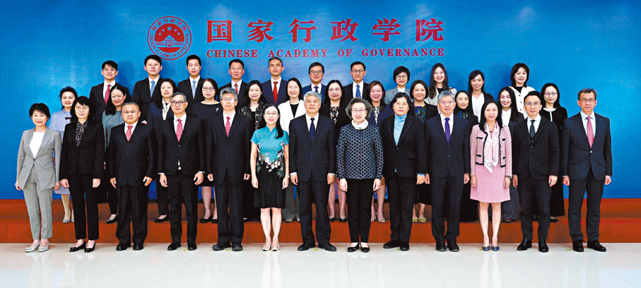 特區政府公務員事務局局長楊何蓓茵昨日上午在公務員事務局常任秘書長林雪麗陪同下,拜會謝春濤,並感謝國家行政學院長期以來對特區政府公務員培訓工作的大力支持。她表示,公務員隊伍是香港特區治理體系中的重要部分,肩負貫徹落實「一國兩制」和支持特區政府施政的責任。今次是公務員體系中最高層級人員的研修課程,是一個難得的學習機會,對掌握國家重大政策和了解錯綜複雜的世界變局,以至日後各自在決策局內制定及落實政策和措施,主動對接國家「十五五」規劃,均十分有幫助。