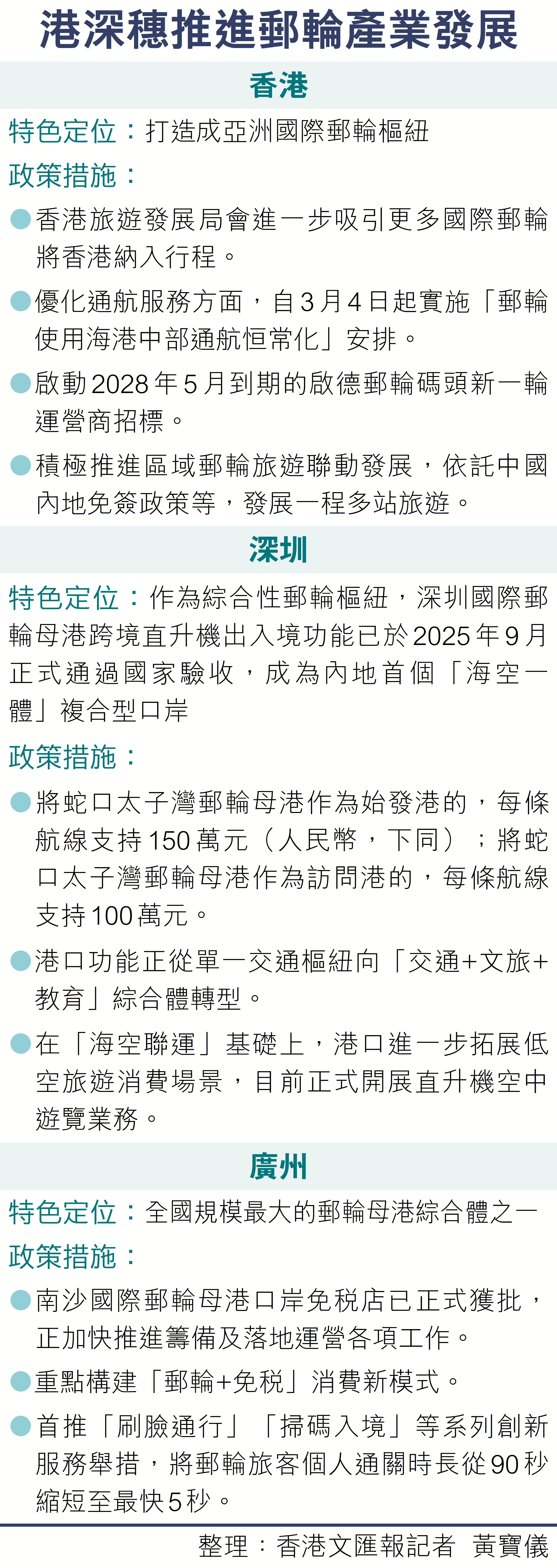 國產大型郵輪正加速深耕粵港澳大灣區市場,以運力升級、航線創新持續完善灣區郵輪旅遊布局,助力大灣區打造國際郵輪旅遊圈,激活海洋經濟發展新活力。20日,愛達郵輪(Adora Cruises)在廣州舉辦第二艘國產大型郵輪愛達·花城號產品及首航季航線發布會,正式亮出加碼大灣區的具體舉措。其中,首次公布了愛達·花城號的首航航線,計劃從廣州開啟前往中國香港、越南順化(真美)6天5晚的國際郵輪航次,首航季則涵蓋為大灣區特別推出的香港過夜航次等短、中、長相結合的豐富航線。愛達郵輪產品及客戶體驗助理副總裁國佳透露,愛達郵輪將持續加大大灣區郵輪運力部署,推動廣州、深圳、香港三港聯動,預計到2027年大灣區郵輪運力將較2025年實現翻倍,進一步夯實大灣區郵輪產業發展根基。●香港文匯報記者 黃寶儀 廣州報道