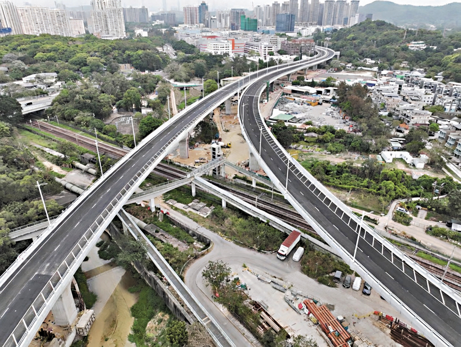 另外,工程亦採用全港首次應用的橋樑平衡轉體技術,興建橫跨東鐵線鐵路的部分,有效縮短施工時間並降低施工風險。