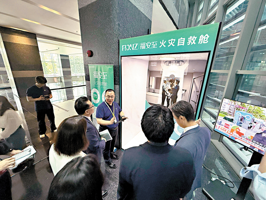 其中「自救艙」作為「躲」的典型科技產品,讓住戶在無法逃生時可進入密閉避難空間,火災時能容納4人至6人,提供2小時至6小時獨立供氧系統,並自動對外報警定位,方便救援人員搜尋。