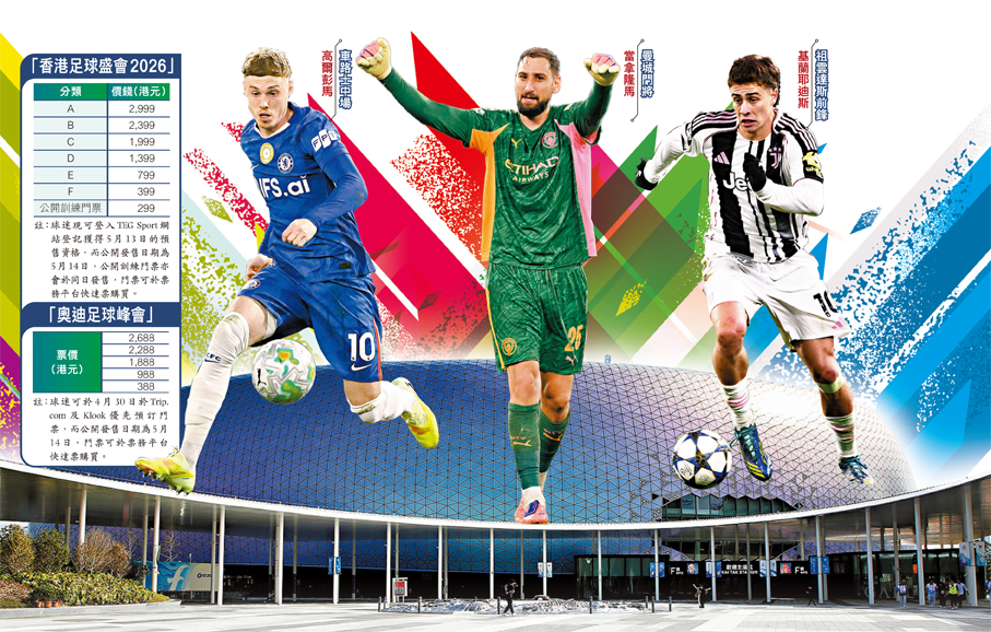 今年正值「世界盃年」,這股足球狂熱將於暑假席捲至香港,8月首星期啟德體育園主場館將接連上演「香港足球盛會2026」及「奧迪足球峰會」,曼城、車路士、國際米蘭、祖雲達斯、拜仁慕尼黑及阿士東維拉六支歐洲頂尖勁旅粉墨登場,當拿隆馬、尼高路巴列拿及華荷域等國腳級球星均會來港獻技,兩大盛事將吸引數以萬計的海外球迷慕名來港,再次彰顯香港作為世界級體育娛樂盛事之都的非凡地位。特區政府文化體育及旅遊局局長羅淑佩表示,去年香港足球盛會大概有48%觀眾來自香港以外,相信今年情況相若,令體育經濟效應最大化。 ●香港文匯報記者 郭正謙、張發兒