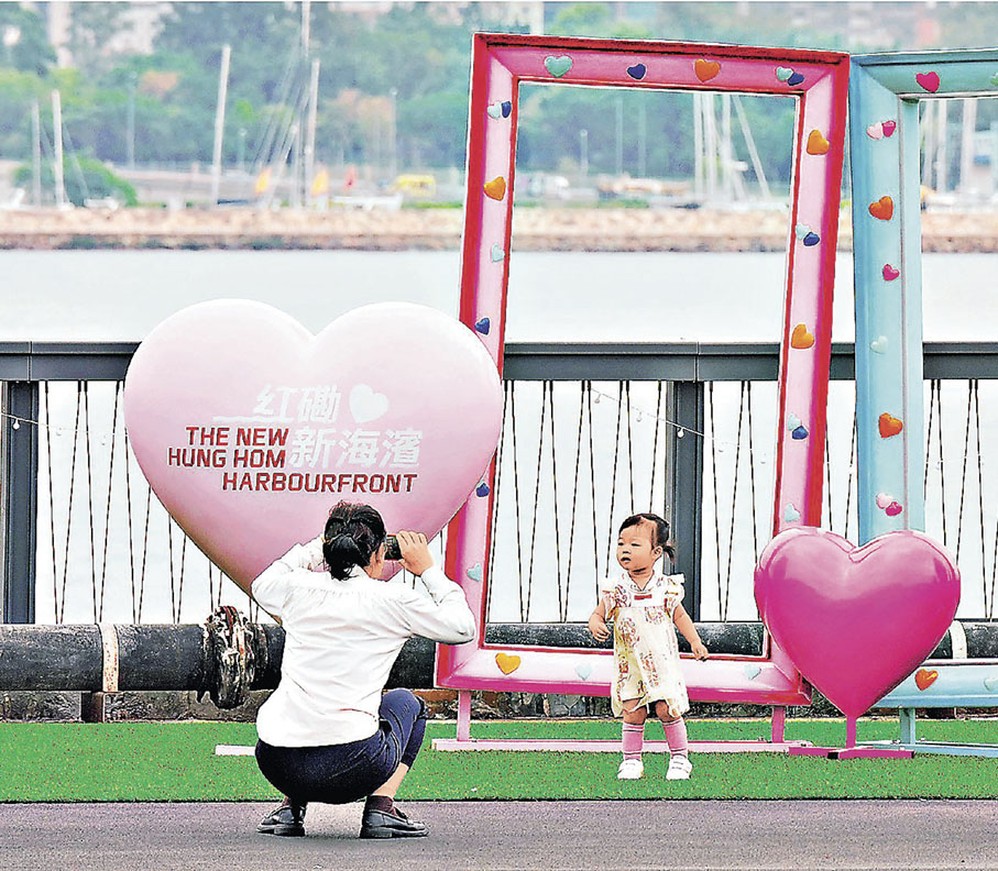 位於尖沙咀海濱花園和紅磡海濱花園之間的「紅磡新海濱」於日前正式向公眾開放,並設下多個趣味打卡點等你來解鎖。開闊的海景平台突出海面,可270度飽覽維港景色。地面印有淺藍色的巨型「紅磡」字樣,在深灰色的地面上十分醒目,站在天橋向下俯拍,輕鬆定格維港海景與地標設置。而海濱空間內,則鋪設多處人工草坪,在其上為遊客打造以高飽和明亮色彩為主的「多巴胺風格」打卡位。愛心氣球擺件與粉藍相框相輔相成,搭配海景十分夢幻。另一邊廂,彩虹獨角獸裝置則靜靜立於草坪之上,等你來互動。