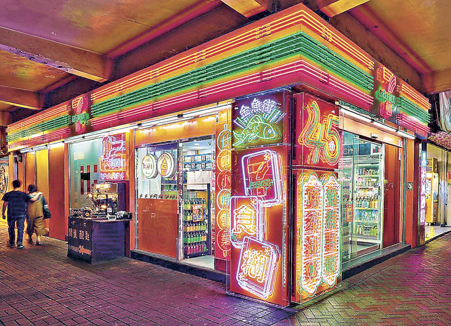 7-Eleven 45周年旺角主題店(旺角亞皆老街99號)以霓虹燈招牌為主題,邀得本地霓虹燈工匠胡智楷師傅親身製作,讓新舊光影交織,呈現香港的絢麗璀璨。霓虹燈招牌上注入了「45周年」、「廿四小時營業」、「梗有一間喺左近」的品牌元素,更添加了地區特色,例如:麻雀設計,金魚街圖案,以及鄰近舊式配匙老店的鎖匙圖案及「成就解鎖」字樣,既幽默又承載着濃厚的本土情懷。