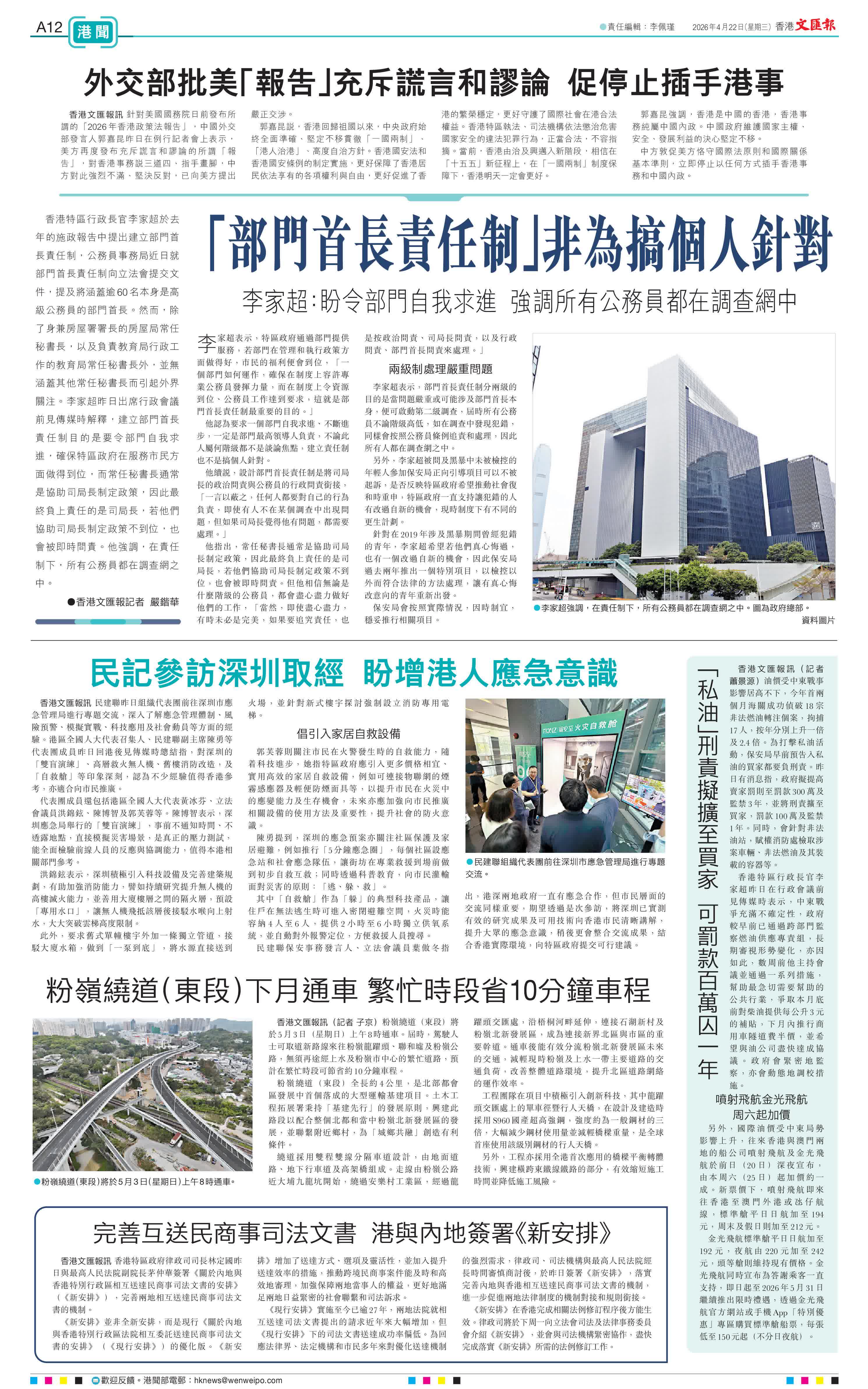 香港特區行政長官李家超昨日在行政會議前見傳媒時表示,中東戰爭充滿不確定性,政府較早前已通過跨部門監察燃油供應專責組,長期審視形勢變化,亦因如此,數周前他主持會議並通過一系列措施,幫助最急切需要幫助的公共行業,爭取本月底前對柴油提供每公升3元的補貼,下月內推行商用車隧道費半價,並希望與油公司盡快達成協議。政府會緊密地監察,亦會動態地調校措施。