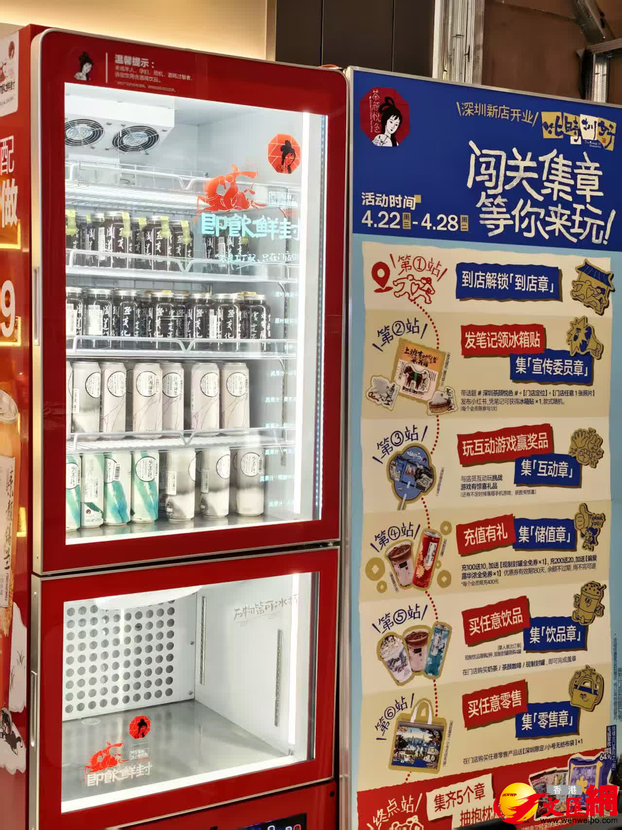 值得注意的是,為保障消費公平開業期間門店實行限購政策:飲品單人單次限購2杯,現制封罐系列單人單次限購4個;同時,茶顏悅色深圳門店推出多項開業活動,包括充值福利、集章抽獎等互動環節,吸引了大量市民參與。