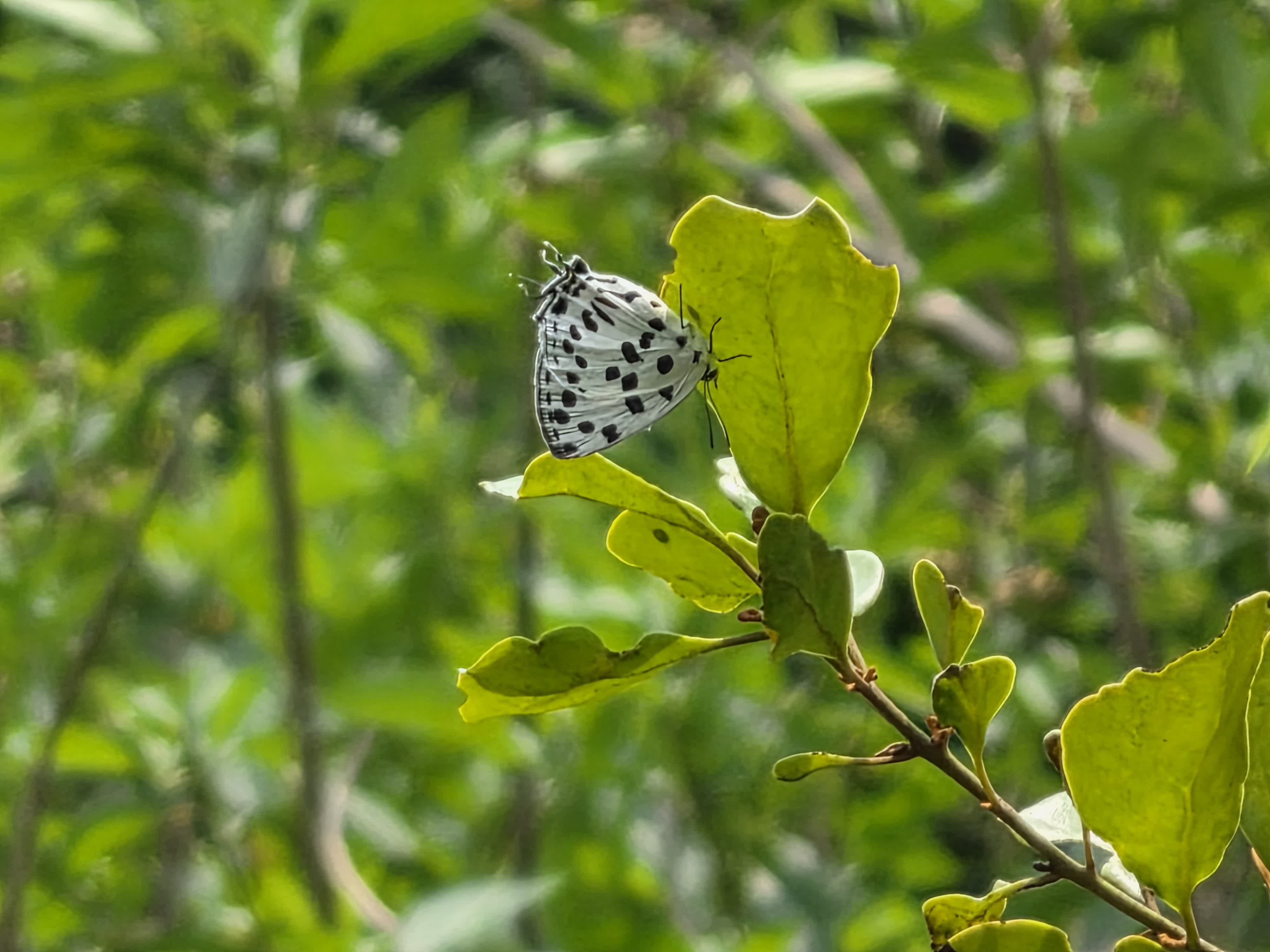 近日有生態愛好者於鳳園蝴蝶保育區拍攝到稀有物種豹斑雙尾灰蝶。環保協進會顧問委員潘瑞輝表示,豹斑雙尾灰蝶的幼蟲以廣寄生為寄主植物,該蝶種自2021年後未曾於鳳園出現,在漁護署的評級中,此蝶屬罕見蝴蝶物種。其翅底布滿許多黑色斑點,排列形似豹紋,是辨識此蝶的重要特徵之一;後翅外緣帶有明顯的「尾突」,令飛行姿態格外獨特。