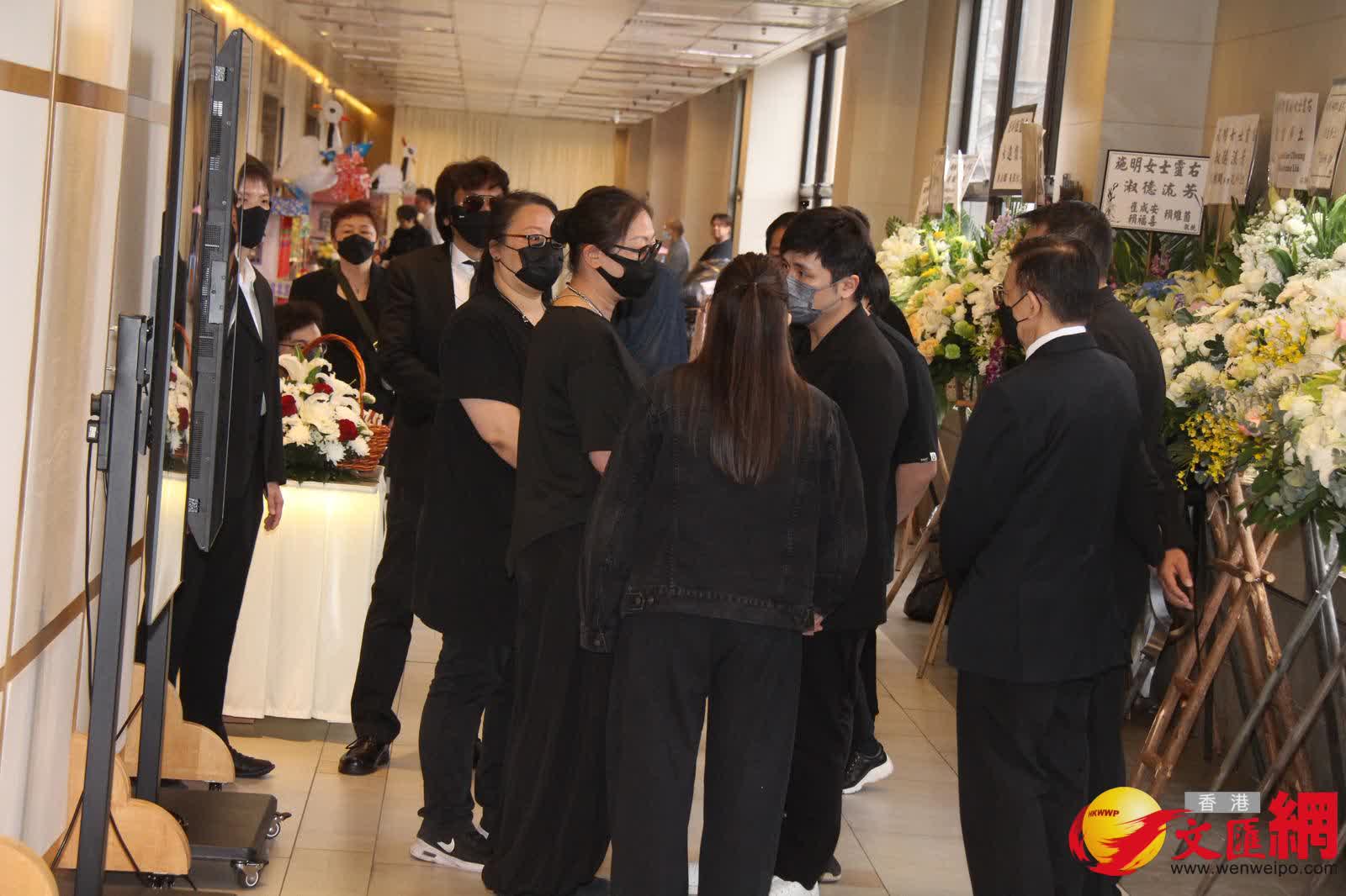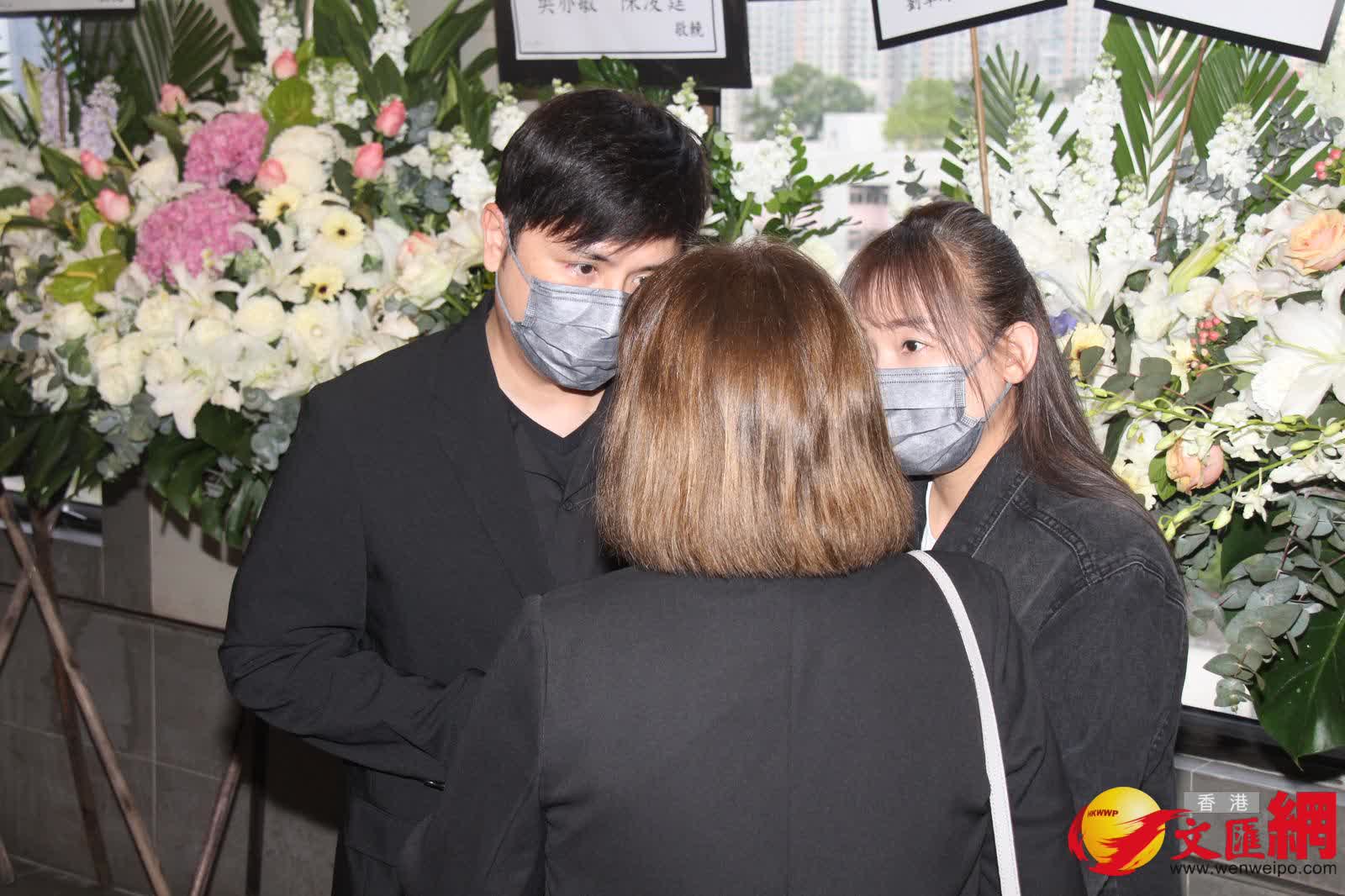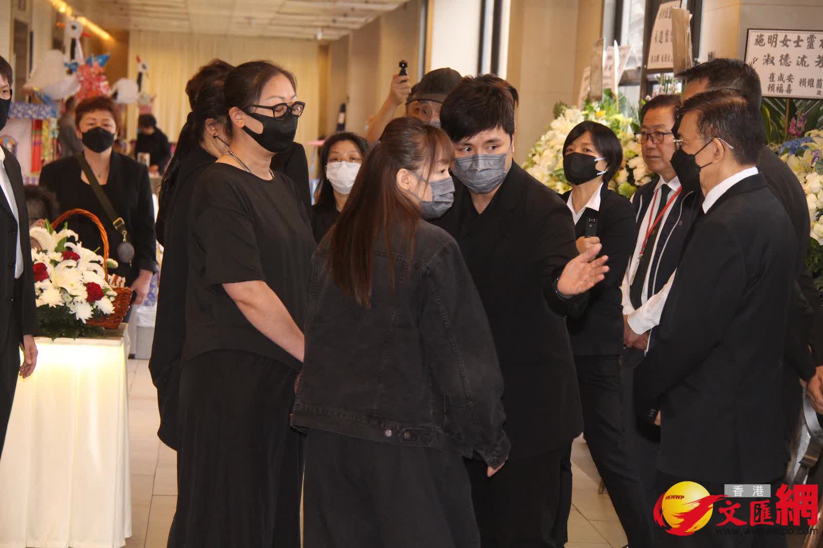 香港文匯報訊(記者 吳文釗、子棠)施明今日(22日)設靈,細仔李泳豪的太太Agnes卻人及花牌都被拒之門外。下午3時左右,大仔李泳漢帶同太太和3個小朋友率先到達靈堂打點,李泳漢站着讓傳媒拍照時,表示:「有心、有心。」工作人員則代李泳漢轉達訊息指:「今日不接受訪問,待整個喪禮完全完成後,之後的問題再逐一回應。」