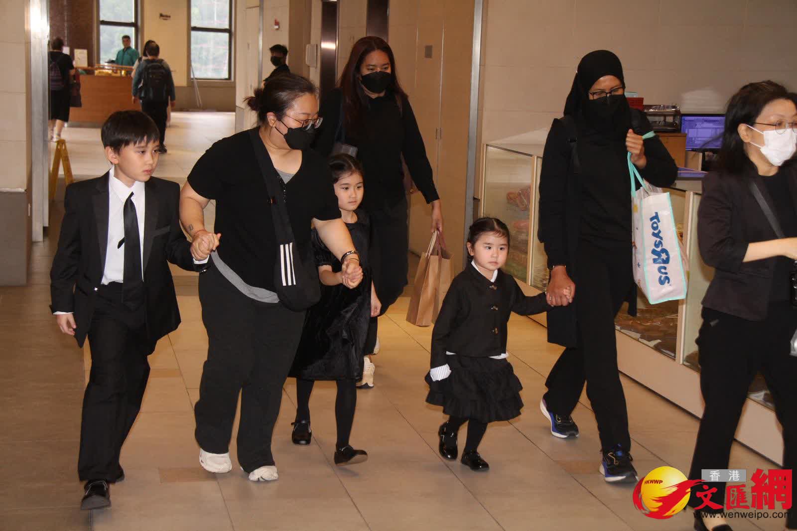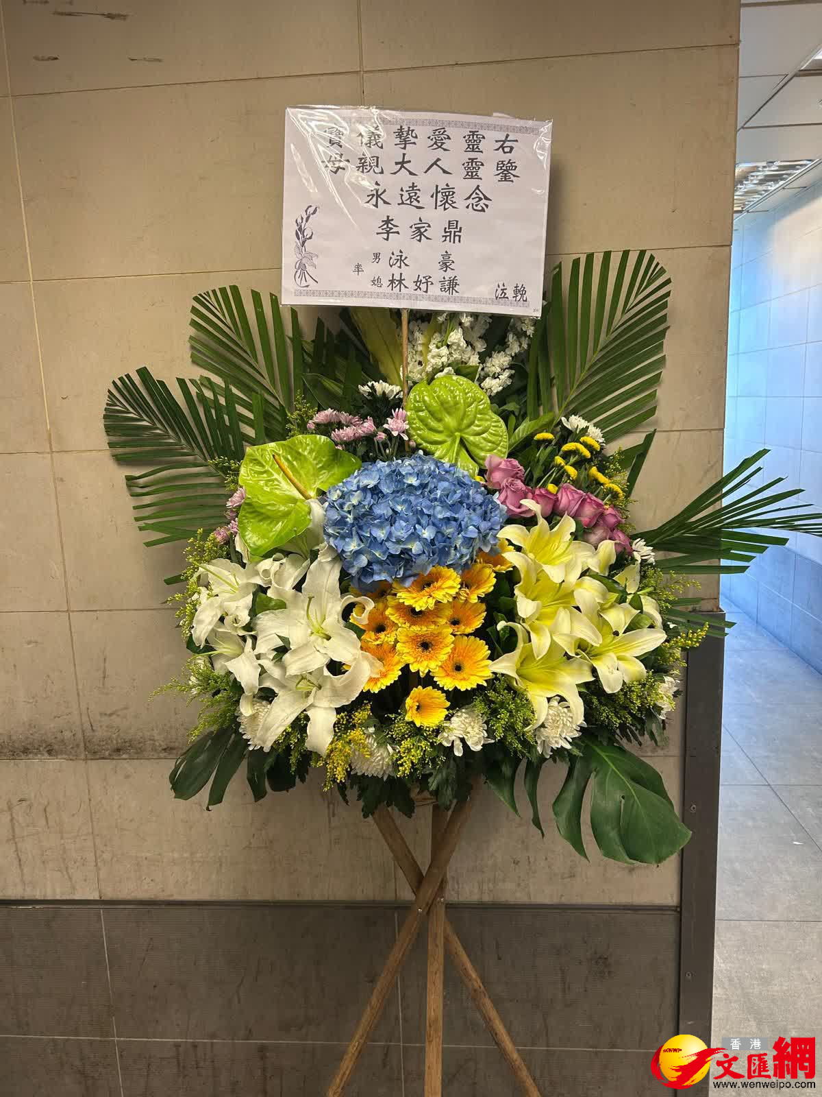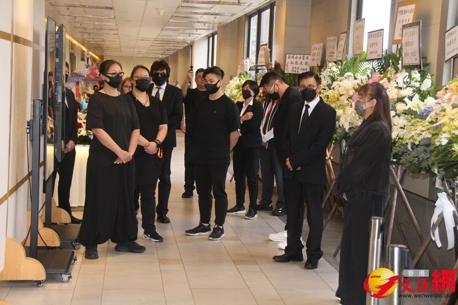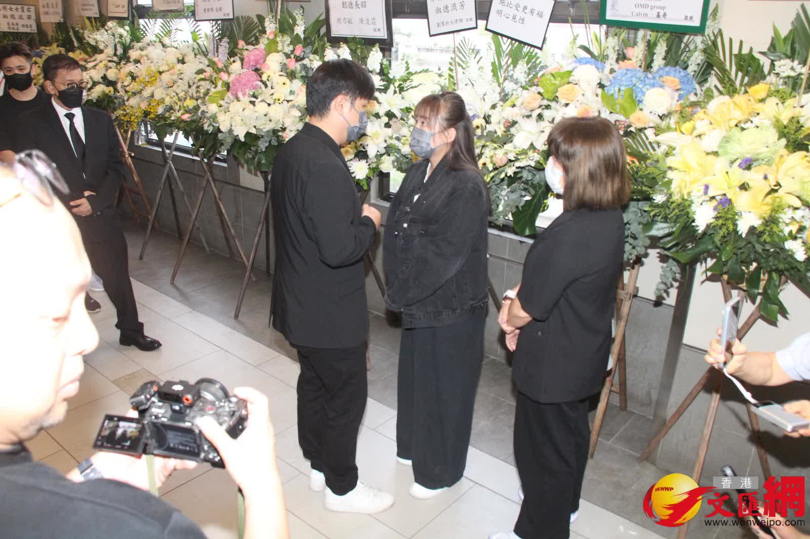 香港文匯報訊(記者 吳文釗、子棠)施明今日(22日)設靈,細仔李泳豪的太太Agnes卻人及花牌都被拒之門外。下午3時左右,大仔李泳漢帶同太太和3個小朋友率先到達靈堂打點,李泳漢站着讓傳媒拍照時,表示:「有心、有心。」工作人員則代李泳漢轉達訊息指:「今日不接受訪問,待整個喪禮完全完成後,之後的問題再逐一回應。」