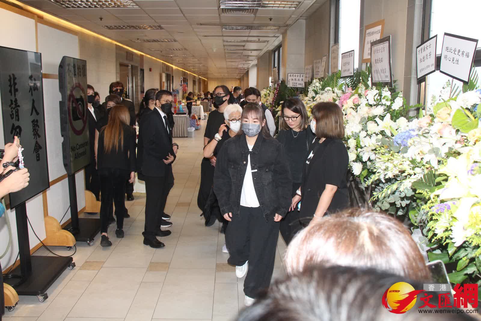 當3人上到靈堂樓層,緩步進入靈堂之際,鼎爺和李泳豪得以直入禮堂,但工作人員就阻止Agnes進入,Agnes在工作人員陪同下站在門外。被問到是否明知不能進入禮堂致哀也前來,以及對於少少心意也未能傳達會否感到不快等,她全程不發一言,只靜靜站在門外等候。約20分鐘後,李泳豪步出與太太耳語約1分鐘後再返入禮堂,Agnes繼續獨自站在門外。