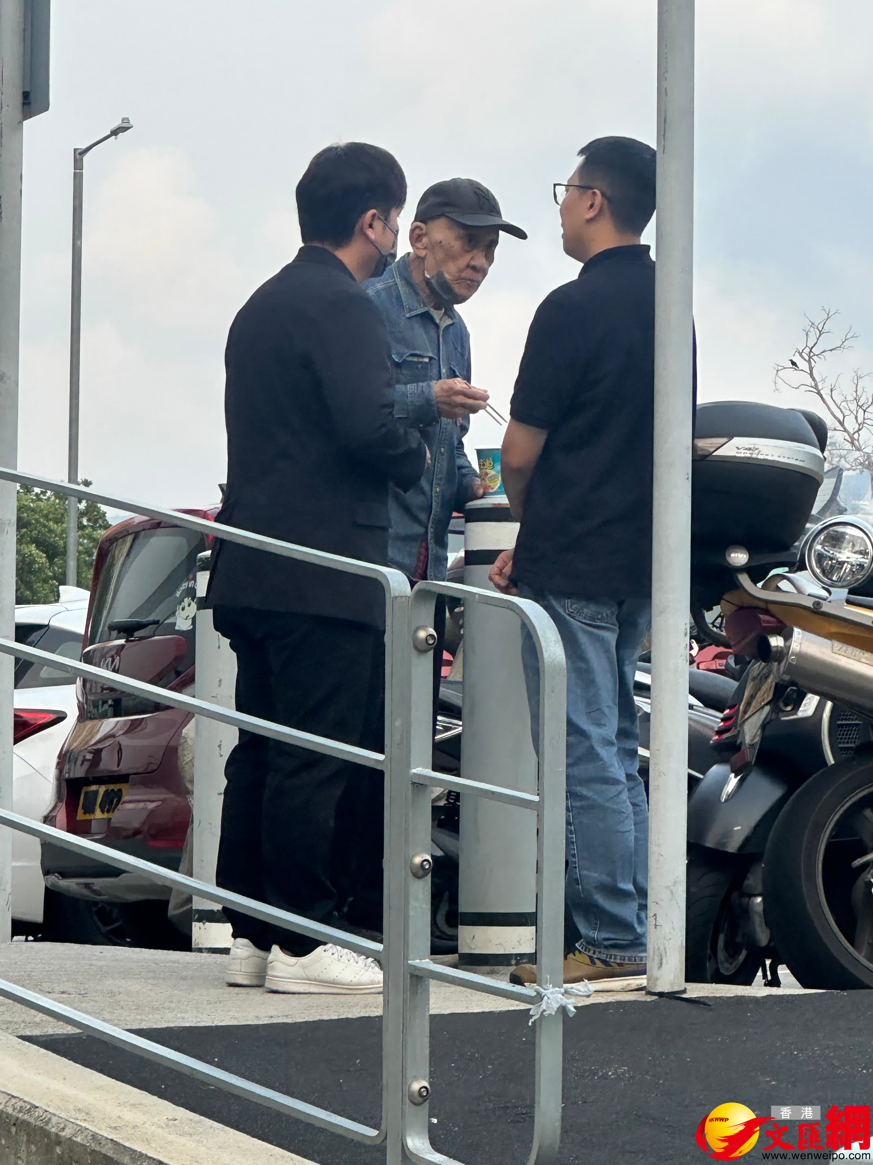 鼎爺和李泳豪隨後到樓下稍作休息,期間鼎爺脫下口罩吃麵,臉型相當瘦削、且用筷子時有點手震,又與泳豪若有所思的不時傾談,約半小時後返回靈堂。問鼎爺可覺得泳漢不近人情,鼎爺沒有回答;再問泳豪有否因太太未能入靈堂而失望,泳豪禮貌說:「今日就不回應任何事了,謝謝。」