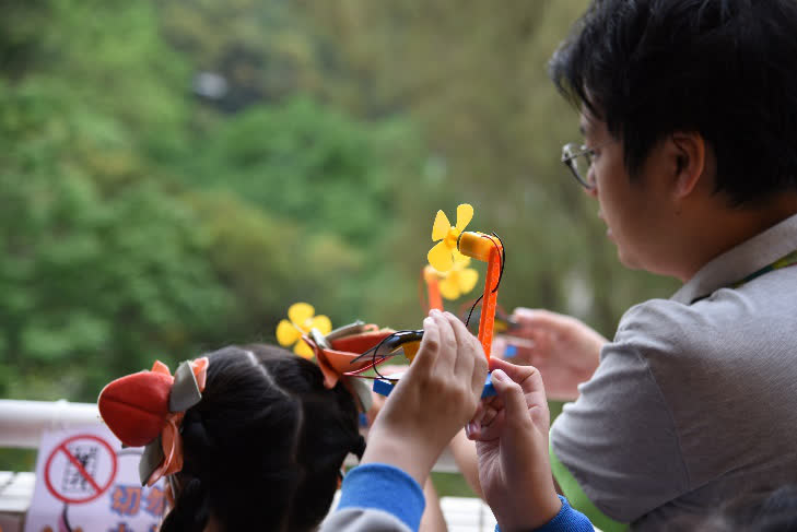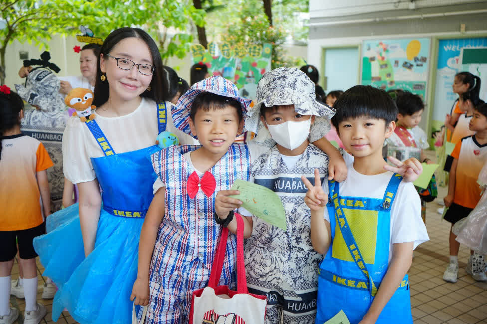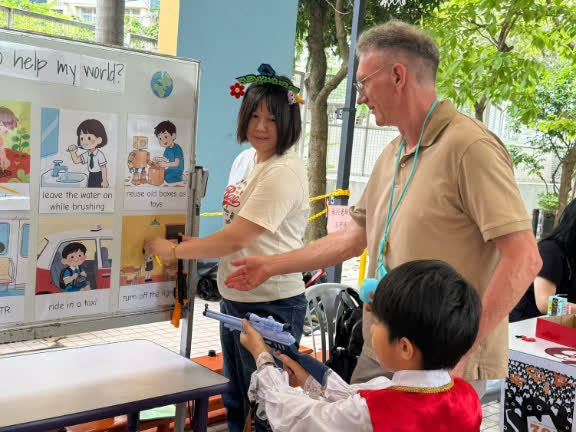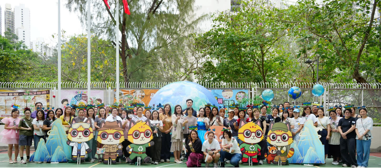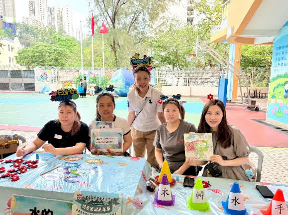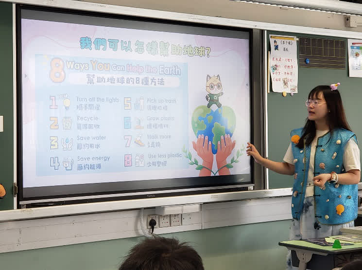 故事姨姨以繪本《垃圾侵略地球!》及《地球需要你》等故事,帶領低年級學生認識環保重要性;三年級同學透過《地球需要你》所設計的「地球保衛戰」活動,認識氣候變暖、海洋垃圾、森林消失等危機,學習從減少垃圾、節約資源做起,成為地球的守護者,並了解國家可再生能源裝機容量全球第一的成就;四年級同學化身「綠色能源工程師」,親手製作太陽能風扇,認識國家加力建設新型能源基礎建設,帶出資源安全的重要性;五年級同學透過《我們的星球》認識生態系統,並製作康乃馨手作向「地球母親」致敬,學習國家森林覆蓋率大幅提升的成就;六年級則體驗四川皮影戲,感受傳統工藝與古人低碳生活的智慧。