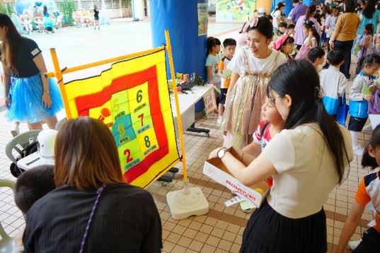 此外,學校更邀請同區的中華基督教青年會葵涌幼稚園、保良局張心瑜幼稚園師生參與故事劇場、攤位遊戲和故事姨姨活動,並與環境保護署合作,於英文圖書館舉行「閱愛環保多元感官體驗展」,結合電腦科VR及AI互動體驗,讓學生透過多元感官學習環保知識。