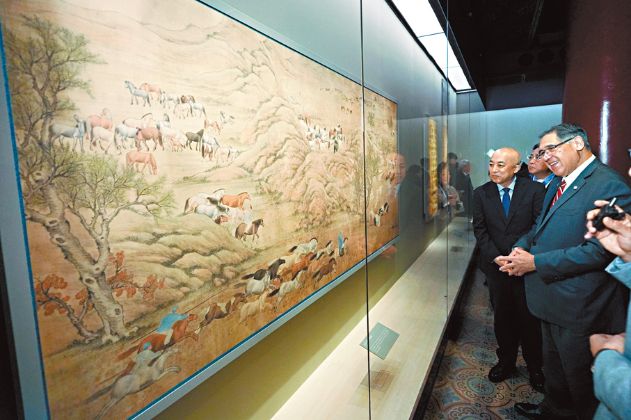 香港文匯報訊(記者 子京)由公益慈善研究院獨家捐助、故宮博物院主辦的「神駿——故宮書畫藝術中的馬世界」展覽,昨日在北京故宮博物院文華殿正式揭幕。展覽精選逾50件故宮院藏書畫作品,當中包括20件國家一級文物,通過「行遊」「牧放」「武功」「神駿」四個單元,展現人馬之間源遠流長的深厚情誼,以及馬在中國文化中的豐富歷史內涵。