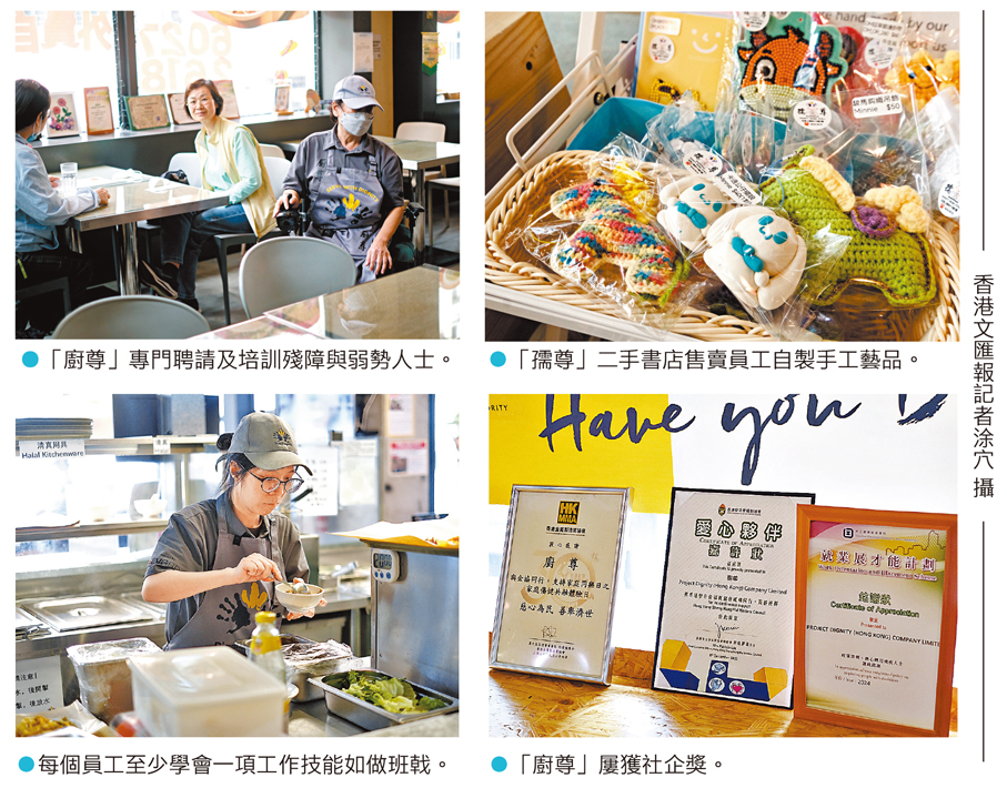 位於旺角的社企餐廳「廚尊」和二手書店「孺尊」2019年在港開業,為市民提供星洲美食以及二手書售賣業務之餘,還先後聘用超過200名殘疾人士及弱勢社群,包括肢體殘障人士、精神障礙人士、受過虐待或有自殺傾向人士、智力障礙人士等。創辦人許承俊早前發現心臟有毛病,正急需物色合作夥伴延續社企「授人以漁」精神,他說:「社企不能只看錢,看錢的話根本堅持不下來,要看『情』。疫情期間經常來回星港奔波,連續在星工作14天,直到有一天員工們見到我都齊聲喊『爸爸回來了』,原來他們不僅把我當老闆,更把我當家人,這種尊重和依賴讓我很感動。」